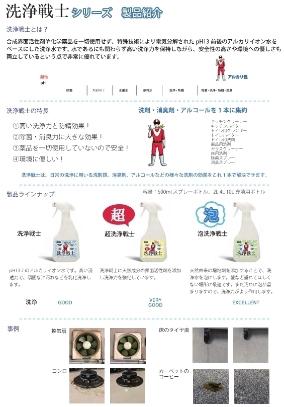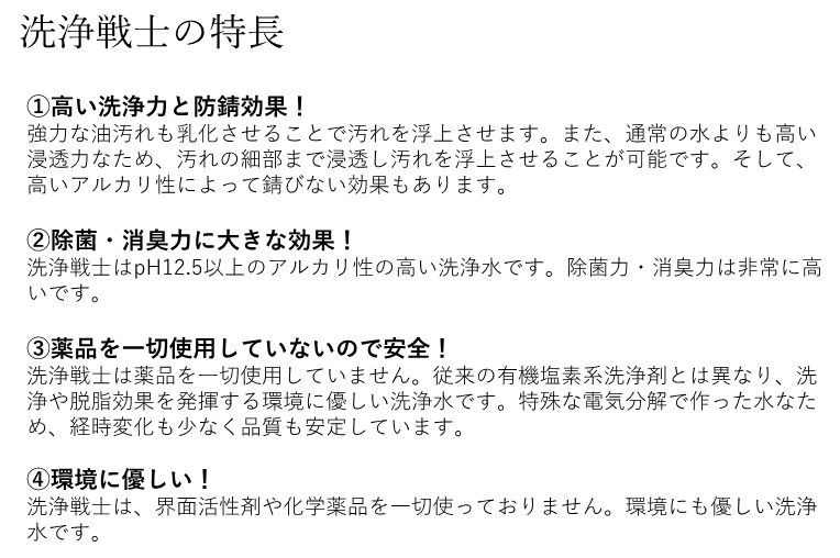 泡洗浄戦士 アルカリ電解水洗浄液 pH13.1 20L バンガードエンタープライズ 除菌 洗浄 清掃 洗剤 日本製「THK-Shop」は、株式会社バンガードエンタープライズの「洗浄戦士」シリーズの正規販売代理店です。【商品名】泡洗浄戦士 20L 【アルカリ電解水洗浄液】【内容量】20L【成分】水酸化カリウム0.89%、天然石鹸成分1.00%、増粘剤0.10%【PH値】13.1【特徴】本製品は、合成界面活性剤やアルコールを使用していない高濃度アルカリ電解水をベースとした泡タイプの洗浄剤です。アルカリ電解水に天然石けんを少量加えることで、通常のアルカリ電解水よりもさらに頑固な汚れを落とすことができます。液だれしてほしくない壁などの場所にもおすすめです。臭いの元となる菌も取り除くため、除菌・消臭効果もあります。洗浄成分が残留しないため、二度拭き不要です。無色無臭の洗浄水です。刺激臭はありません。【用途】洗浄・除菌・消臭(詳細は写真の内容をご確認ください)【使用方法】水で5倍まで希釈してもお使いいただけます。ワックスなどコーティングしている面を洗浄する場合は、適正な濃度まで希釈してご使用ください。原液での使用は、ワックス剥離剤としての効果があります。【製造元】バンガードエンタープライズ株式会社【製造場所】日本国内製造【使用上の注意】◆洗浄・除菌・消臭以外の用途には使用しないで下さい。◆開封後は早めにお使いください。 ◆肌が敏感な方や長時間ご使用の場合は、手袋を着用してください。◆飲料水ではありません。万一飲み込んだ場合には多量の水を飲み、専門医にご相談下さい。◆目に入った場合は、すぐに流水で洗い、専門医にご相談下さい。◆身体や顔には使用しないで下さい。◆幼児の手の届かないところに保管して下さい。◆高温になる所や凍結する所、直射日光に当たるところには保管しないで下さい。◆本容器以外の容器には移し替えないでください。◆使用後の容器は関連法規および各自治体の定める方法で処理してください。********************************************************************************************************