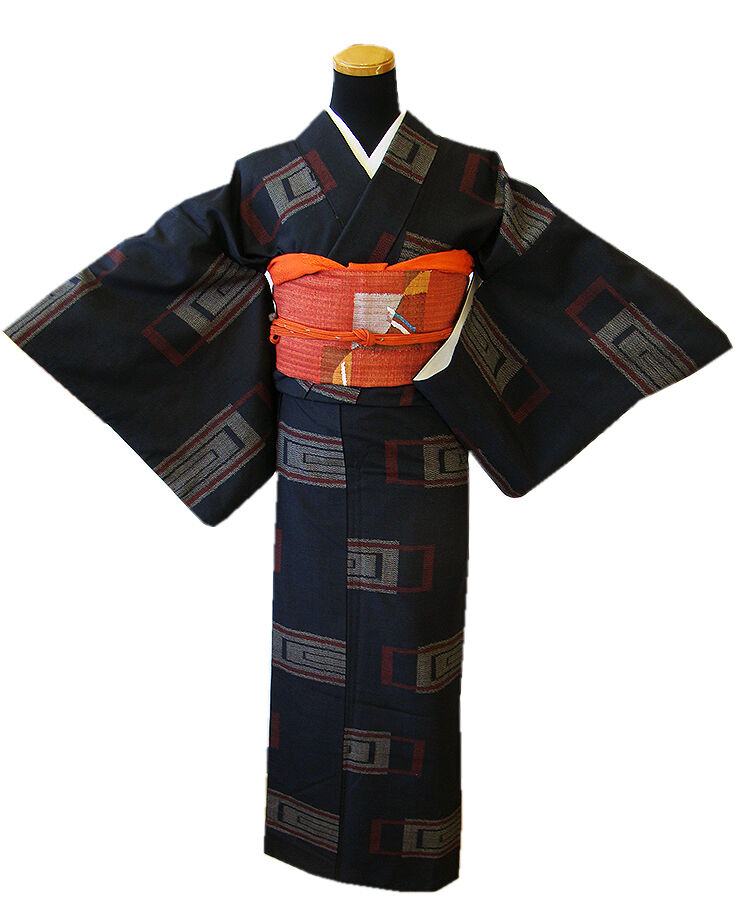 | 商品説明 | こちらのお品は「袷」ですので10月~5月にお召頂ければと思います。 着物には、大きく分けて「袷(あわせ)の着物」と「単衣(ひとえ)の着物」と「夏着物」があります。 反物(表地)を着物に仕立てるときに、裏地類をつけるものを袷の着物、 つけないものを単衣の着物と呼び、胴裏や八掛といった裏地がつかない一枚ものの着物です。 とてもしなやかでさらりとした風合いの紬地は、ぼそや節も味わい豊かな 黒色地に赤、灰色の織柄が粋な仕上がりとなっております。 また、八掛は煉瓦色(正絹)、幅広い年代の方にお召し頂けます。 しなやかな扱い易くいなごや帯(たいこ柄)は、朱赤色地に白、金糸、茶色等の織柄、 帯揚げはしなやかなちりめん地、朱色地に花の地模様入り、 帯〆は平組、土色地に鼠色の編み込みの組紐(中国製)となっております。 |