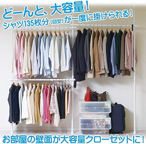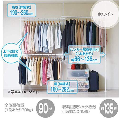 「山善 突っ張りハンガーラック 衣類収納 幅160-292cm 耐荷重 90kg トリプル コーナーにも 大容量 縦横伸縮 引っ掛け棒付属 かんた」▼4983771164217▼(商品説明)・ホワイト トリプル WJ-795R(WH)・・Color:ホワイトSize:トリプル・お客様品(かんたん)・本体サイズ:幅160-292×奥行9.5×高さ190-260cm・材質:スチール・ポリプロピレン・ABS樹脂・原産国:韓国・耐荷重:全体耐荷重:90kg(バー1本=30kg)説明 ●お部屋の壁面が大容量クローゼットに大変身 ●収納目安はシャツ135枚分、と大容量 ●お部屋の角でL字型に使用することも可能 ●上部に掛けた物も取りやすい掛けおろし棒1本付属 ●簡単操作でワンタッチ固定 ●配置レイアウトが自由なのでお部屋のインテリアにもあわせやすい