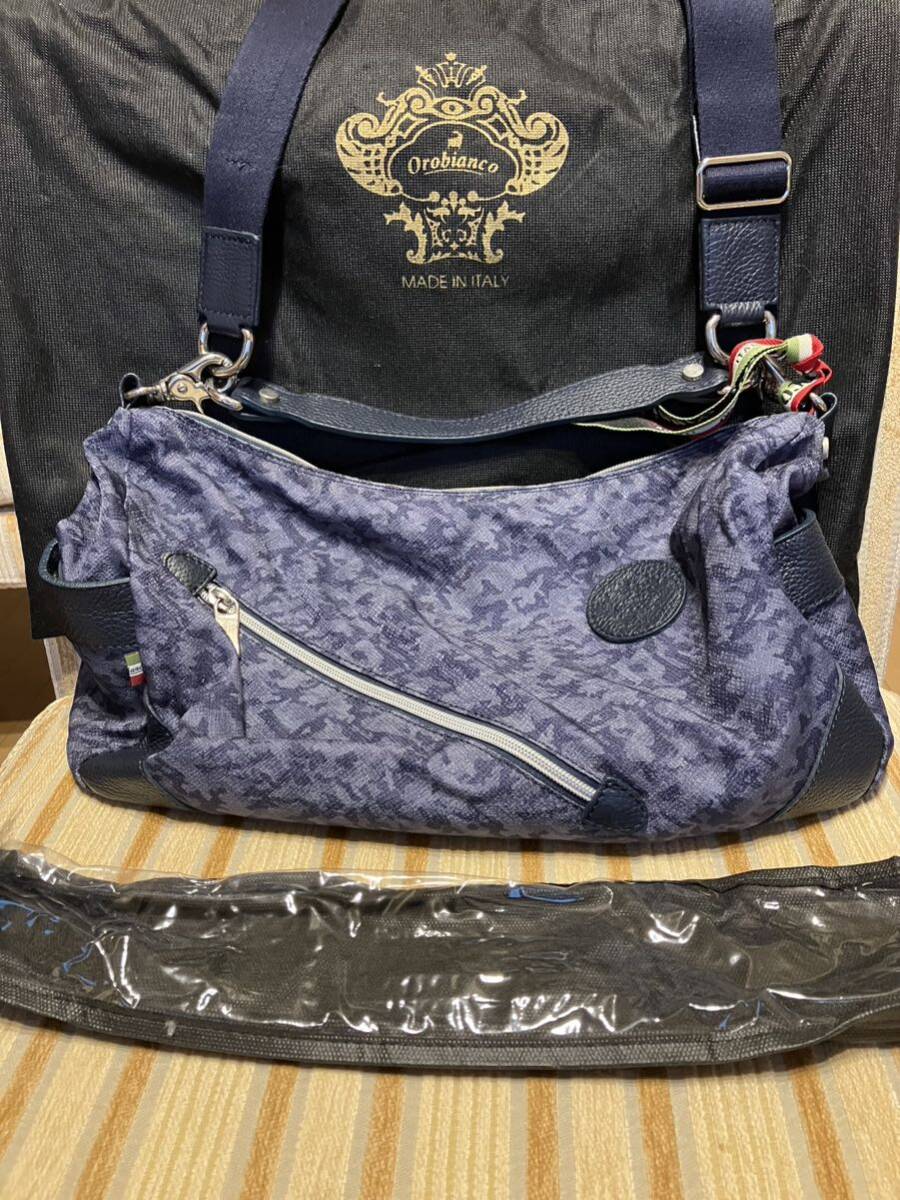 希少なオロビアンコ のネイビーの迷彩バッグです。写真6.7にあるように、多少シミがありますが、元々の使用回数は2回程度で、シミ以外は新品同様と言えるほど綺麗です。| 出价者 | 信用 | 价格 | 时间 |