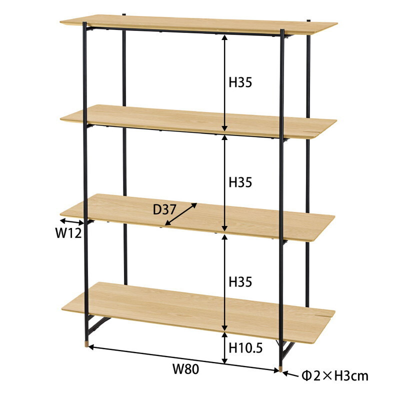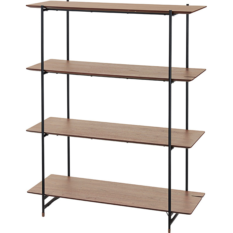 ルカ シェルフ 4段 【ブラウン】 天然木化粧繊維板(ウォルナット) ウレタン塗装 スチール(粉体塗装)