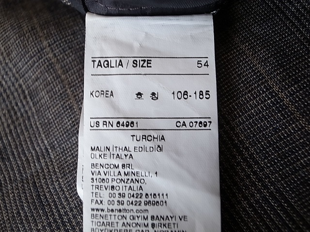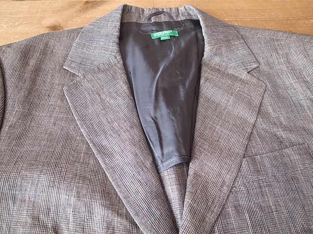 ◆ブランド 「UNITED COLORS OF BENETTON」 アメリカ古着 ●サイズ表記 54 実寸サイズ XL相当 肩幅…48cm(肩先から肩先の間の長さ) 身幅…58cm(両脇を横直線に結んだ長さ) 着丈…80cm(後衿ぐり中央から後身頃裾) 袖丈…69cm(袖付けの肩先から袖先) ※平置き状態での素人採寸ですので、多少の誤差はご了承ください。 ●素材…100%LINEN 春夏向き ●色…グレー系 グレンチェック柄 ●ベント…サイドベンツ ●ポケット… フラップポケット ●裏地…背抜き仕立て ●製造国…ルーマニア ●状態…使用感は少ない美品です。 ★送料 全国一律 700円 佐川急便 (北海道900円 沖縄その他離島1700円) ※複数ご購入の場合、同梱発送可能です。 |