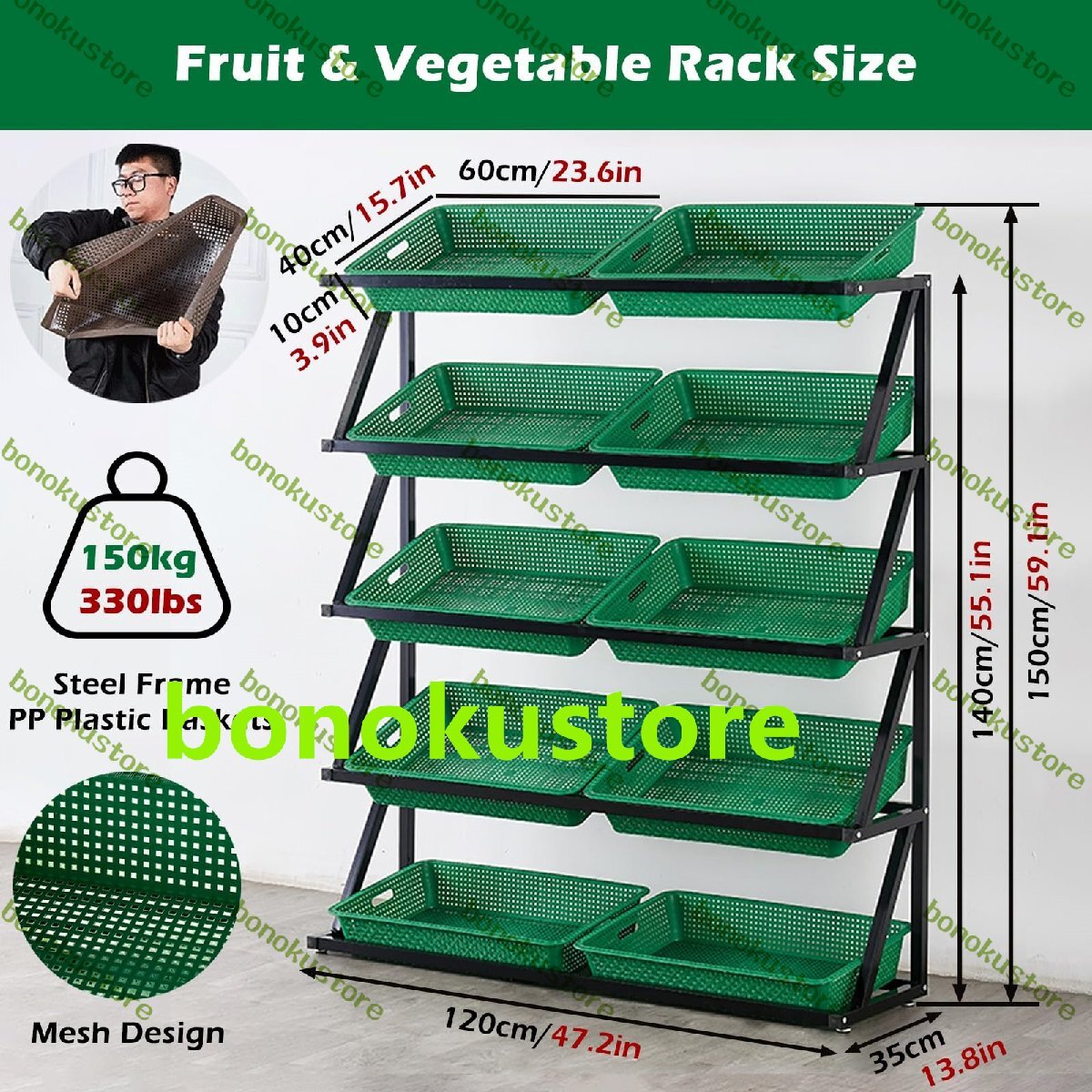 5段キッチン収納ラック フルーツ野菜棚 スチール製 業務用 大容量 スーパーマーケット スナックディスプレイ 小売店/市場 ポテト タマネギ 農産物オーガナイザー (ブラック)