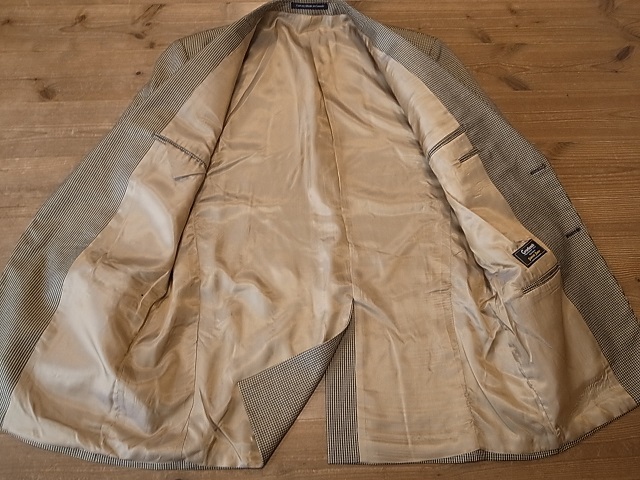 ◆ブランド 「Patrick James」 アメリカ古着 ●サイズ表記 42R 実寸サイズ XL相当 肩幅…49cm(肩先から肩先の間の長さ) 身幅…58cm(両脇を横直線に結んだ長さ) 着丈…80cm(後衿ぐり中央から後身頃裾) 袖丈…61cm(袖付けの肩先から袖先) ※平置き状態での素人採寸ですので、多少の誤差はご了承ください。 ●素材…52%SILK 48%WOOL ”Carlanda”イタリア生地 オールシーズン対応 ●色…黒×ベージュ 千鳥格子ピンチェック ●ポケット… フラップポケット ●裏地…総裏仕立て ●ベント…センターベント ●製造国表記…CANADA ●状態…使用感は少ない美品です。 ★送料 全国一律 700円 佐川急便 (北海道900円 沖縄その他離島1700円) ※複数ご購入の場合、同梱発送可能です。 |