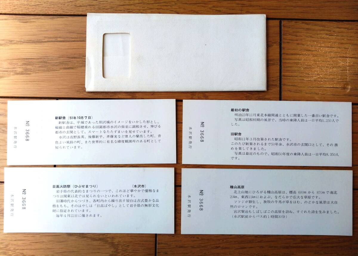 | 未使用【水沢駅 新築記念入場券(4枚組セット)/外袋付き】盛岡鉄道管理局(昭和51年) | |