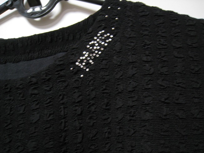 サイズ/L ポリエステル100% 肩パッド付き 裾のスリットに飾りリボン紐(解けません) 未使用ですが、在庫処分の長期保管品。 色々ご理解頂ける方のみよろしくお願い致します。 |