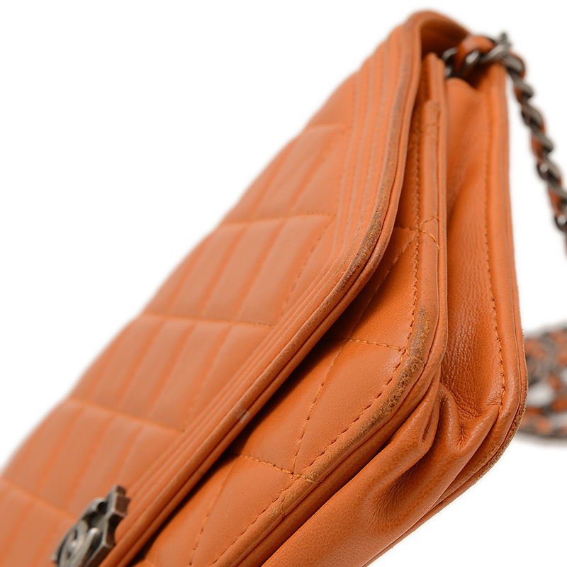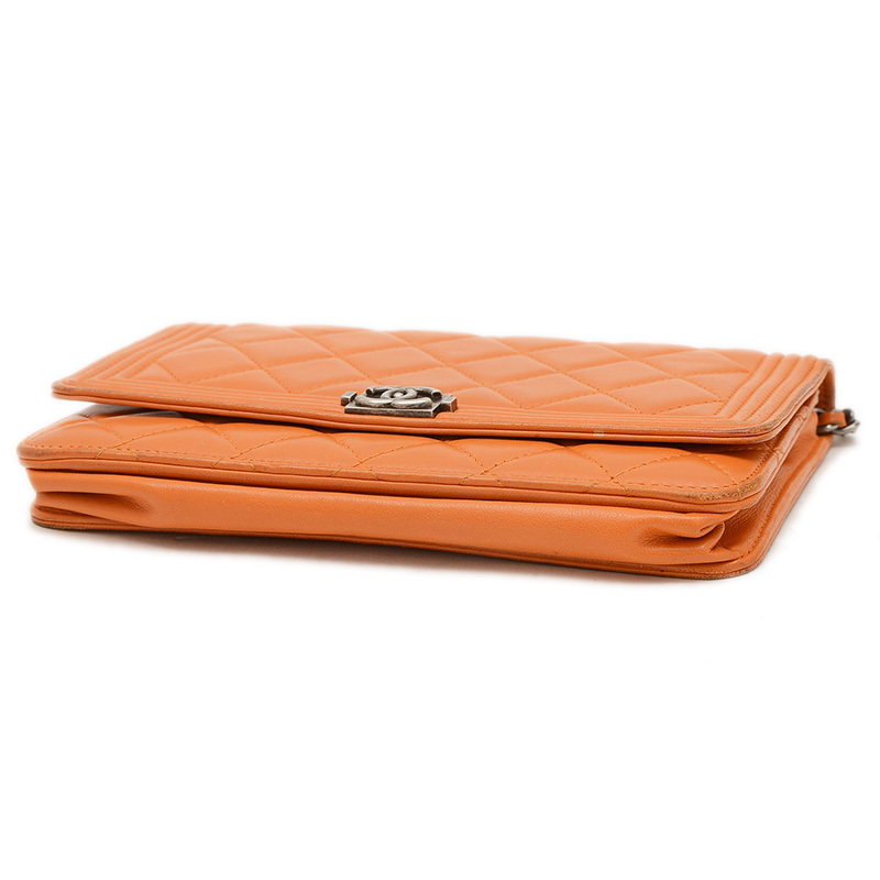 | 商品特徴 | ボーイシャネルのチェーンウォレットで、ラムスキン製で鮮やかなオレンジ色が特徴。長財布の機能とチェーンストラップによるバッグとしての使い勝手を兼ね備え、クールなデザインと柔らかな手触りが魅力です。 |