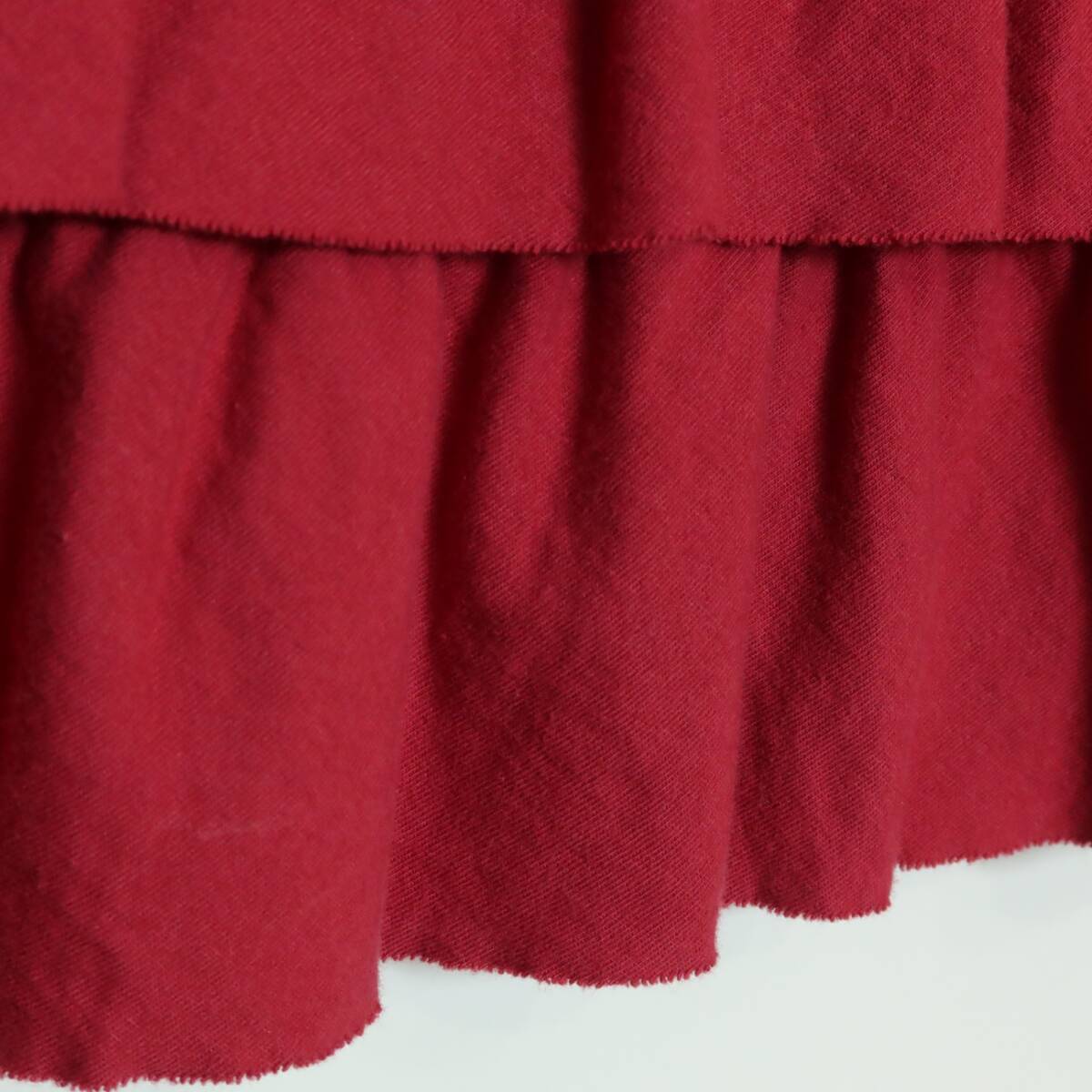 | 商品説明 | 【実寸約】バスト74着丈52(cm) 【サイズ表記】3(M) 【素材】綿100% 【状態】使用感少々で傷や汚れが少々あるお品物 左側袖の縫い合わせにスレ感がございますが、まだまだ大活躍の可愛い一着です。 【デザイン】赤系 かぶせ段々フリルが可愛いノースリーブカットソーです。 可愛いワンポイントリボン♪ 鮮やかで目を惹く素敵な一着です。 薄手/無地 |