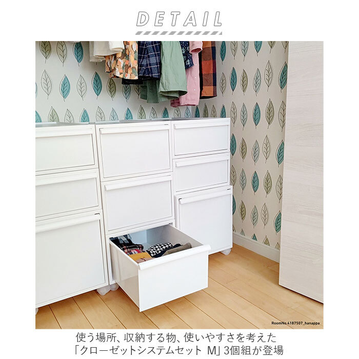 | 商品説明 | ・・使う場所、収納する物、使いやすさを考えた「クローゼットシステムセット M」3個組が登場。 ・幅広いニーズに応える、クローゼットシステム。出し入れしやすい引き出しタイプ。 ・全面フラット形状で使い勝手抜群。簡単にスタッキングOK! ・置く場所を選ばず使える、ツヤのないマットな質感。中身が見えることなく、生活感を隠せる不透明カラー。 ・折りたたんだ衣類などを収納しやすい内寸設計。 ・Tシャツ、カットソー、ワンピース、ミニスカート、ハーフパンツなどの収納に便利なMサイズ。小さなお子さま用の冬物衣類の収納も可能。 ・下の段でも引き出しやすいよう、上部に取っ手を配置。必要以上にかがむ必要がなく、体への負担を軽減。 ・引き出しの抜け落ちを防ぐストッパー機能付き。 ・積み重ね時にズレにくく、倒れにくい!背面ロック機能付きで安全◎ ・枠には、変形を防ぐ頑丈な素材を使用。積み重ねたり、上に物を置いてもたわみにくいのがポイント。 ・当店別ページで販売中、サイズ違いのクローゼットシステムセットと高さが揃う、モジュールシステム設計!魅せる収納が簡単に実現。(※Sサイズ商品コード:csd14p、Lサイズ商品コード:csd32p) ・収納をよりスマートに。生活スタイルに合わせてカスタマイズ!安心の日本製。 |