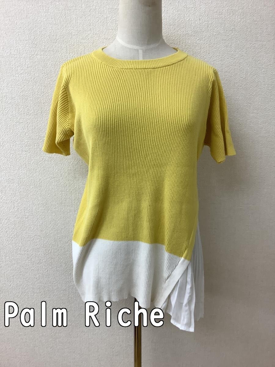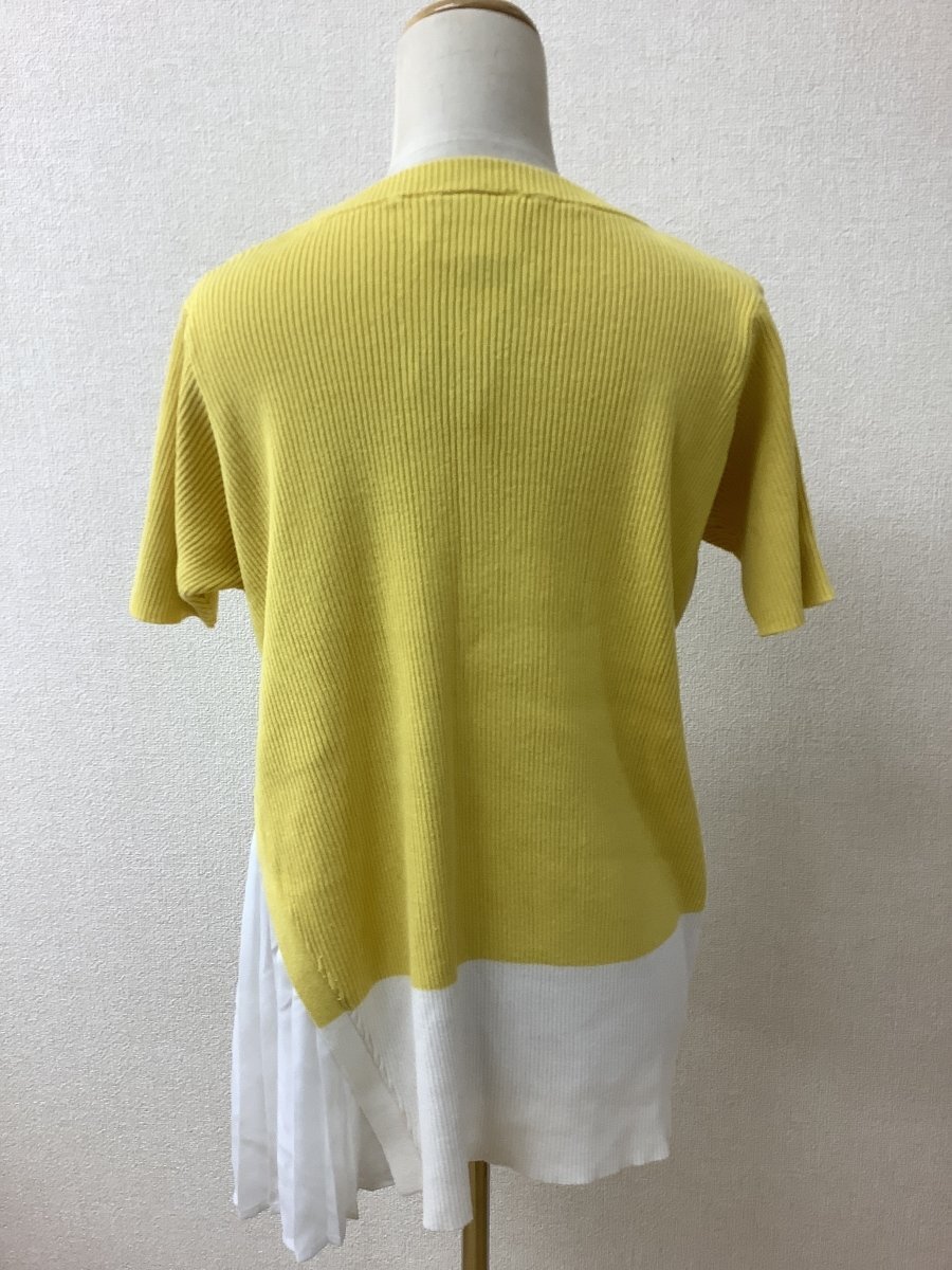 | 管理番号:10^138032 Palm Riche ポームリシュ からし色と白切り替えニット 一部白プリーツ生地 表示サイズ:M 実寸(参考)