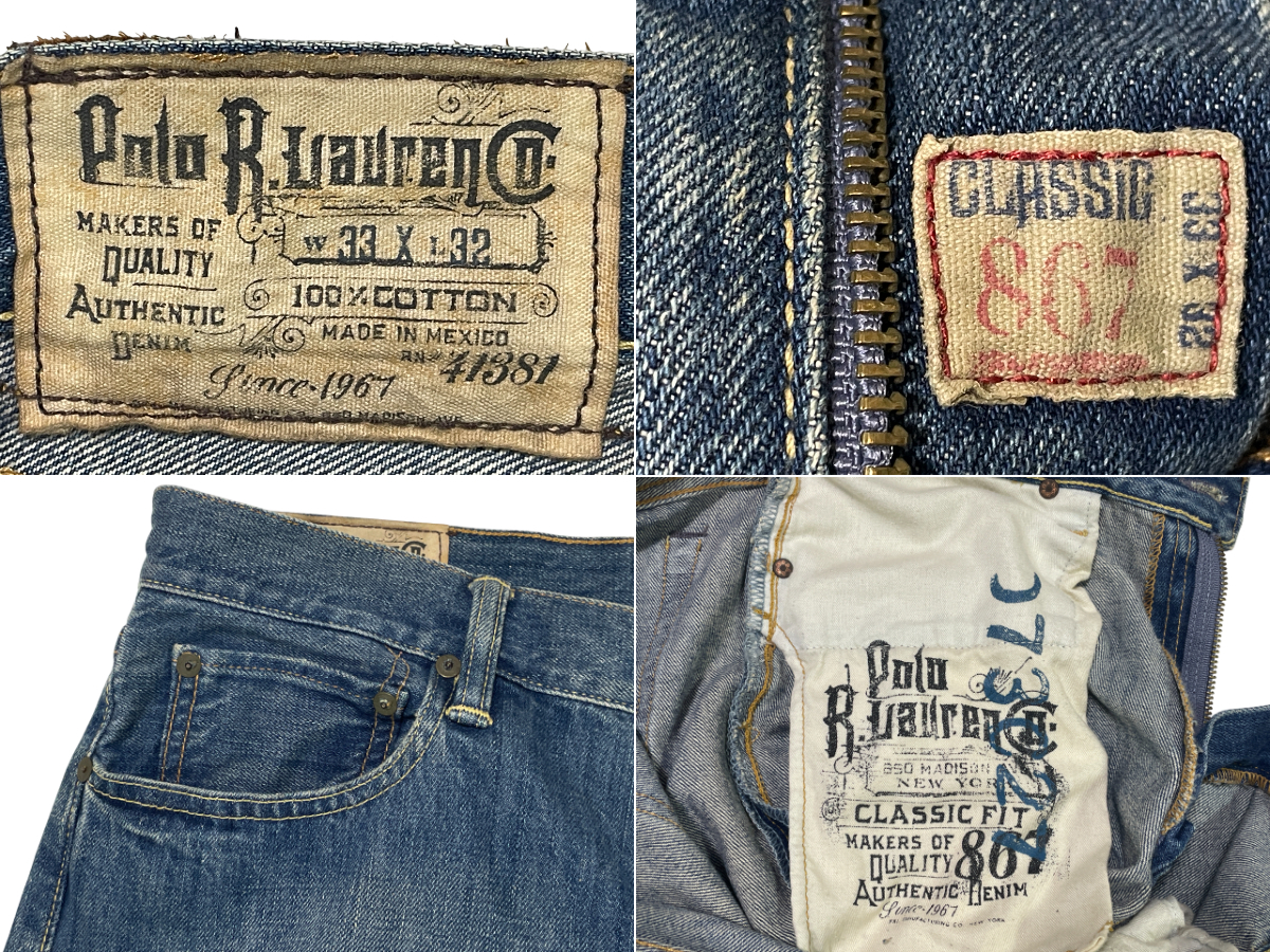 | ブランド:POLO 型 番 :41381 カラー :インディゴ 状 態 :USED POLO RALPH LAUREN 867 メキシコ製 デニムパンツです。 ラルフローレン らしいキレイなデザインのヴィンテージ感漂うカッコ良いデニムです。 状態の良いパンツです。お探しの方お勧めですよ。 ■サイズ:製品表記 W33 ■サイズ:実寸(平置き) ウエスト 46.0cm (×2=約92cm) W36相当 股下 77.5m 股上 29.0cm ワタリ 33.0cm すそ幅 23.0cm | ||