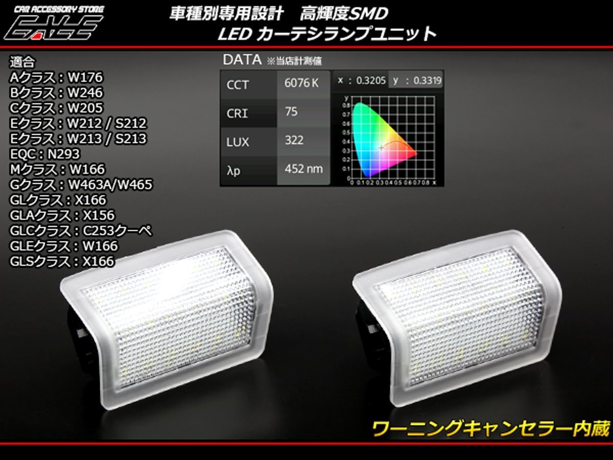 車種別専用設計 LED カーテシランプ 高輝度のSMD-LEDを18基内蔵し、純正ランプやバルブ交換等と比べ、足元を明るく照らします。 色温度も6000Kと限りなく純白に仕上げました。 その他、ベンツ専用パーツは⇒ こちら 適合車種 Aクラス:W176 Bクラス:W246 Cクラス:W205 Eクラス:W212 / S212 Eクラス:W213 / S213 EQC:N293 Mクラス:W166 Gクラス:W463A/W465 GLクラス:X166 GLAクラス:X156 GLCクラス:C253クーペ GLEクラス:W166 GLSクラス:X166 純正でカーテシが光る車輌にしか使用できません。 |