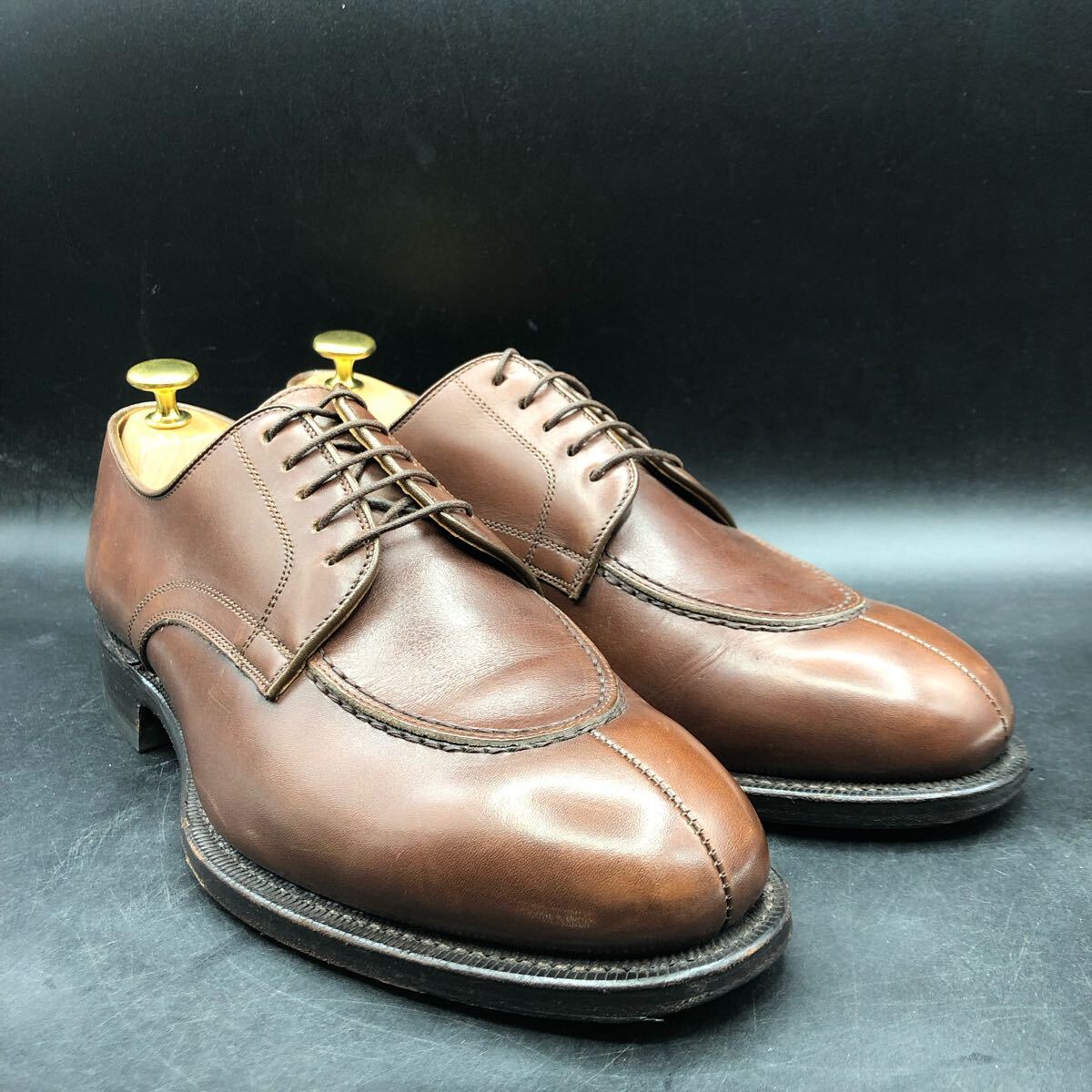 9M4628 良品 JOHNSTON&MURPHY ジョンストン&マーフィー レザー ビジネスシューズ Uチップ 外羽根 8/26.0cm 相当 ブラウン| 出价者 | 信用 | 价格 | 时间 |