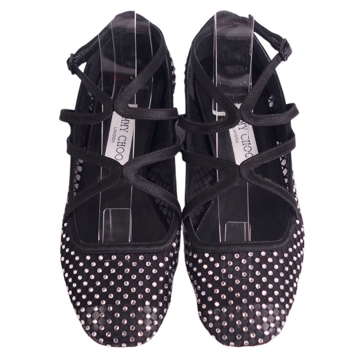 | 未使用 ジミーチュウ JIMMY CHOO パンプス アストリアフラット ラインストーン メッシュ シューズ 靴 38(28cm) ブラック |