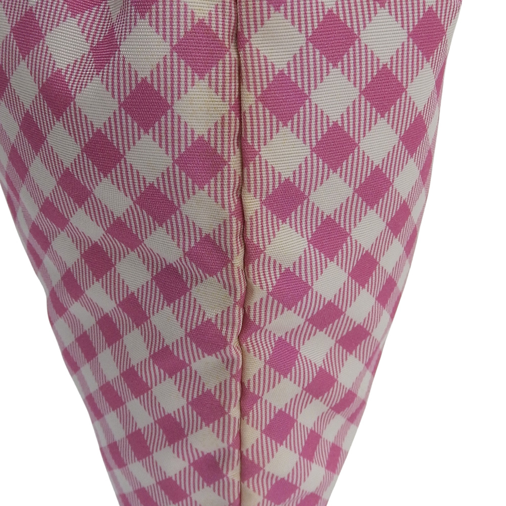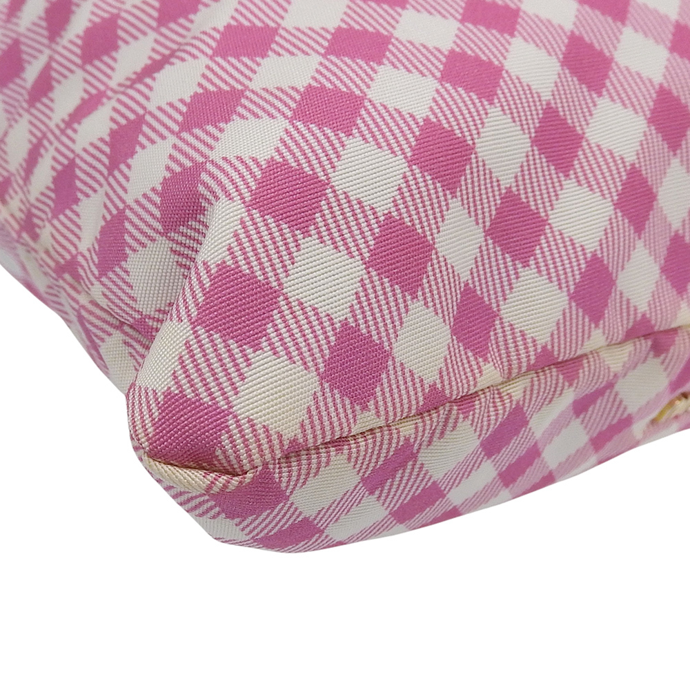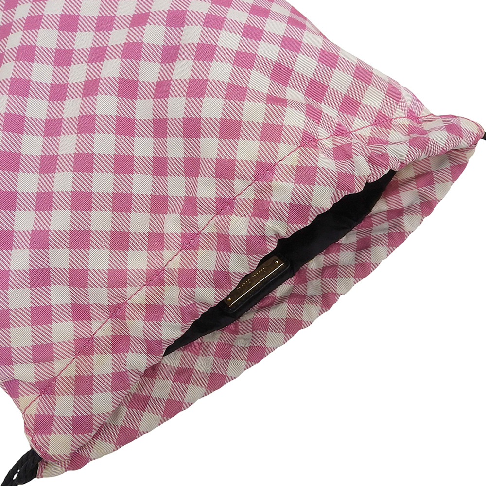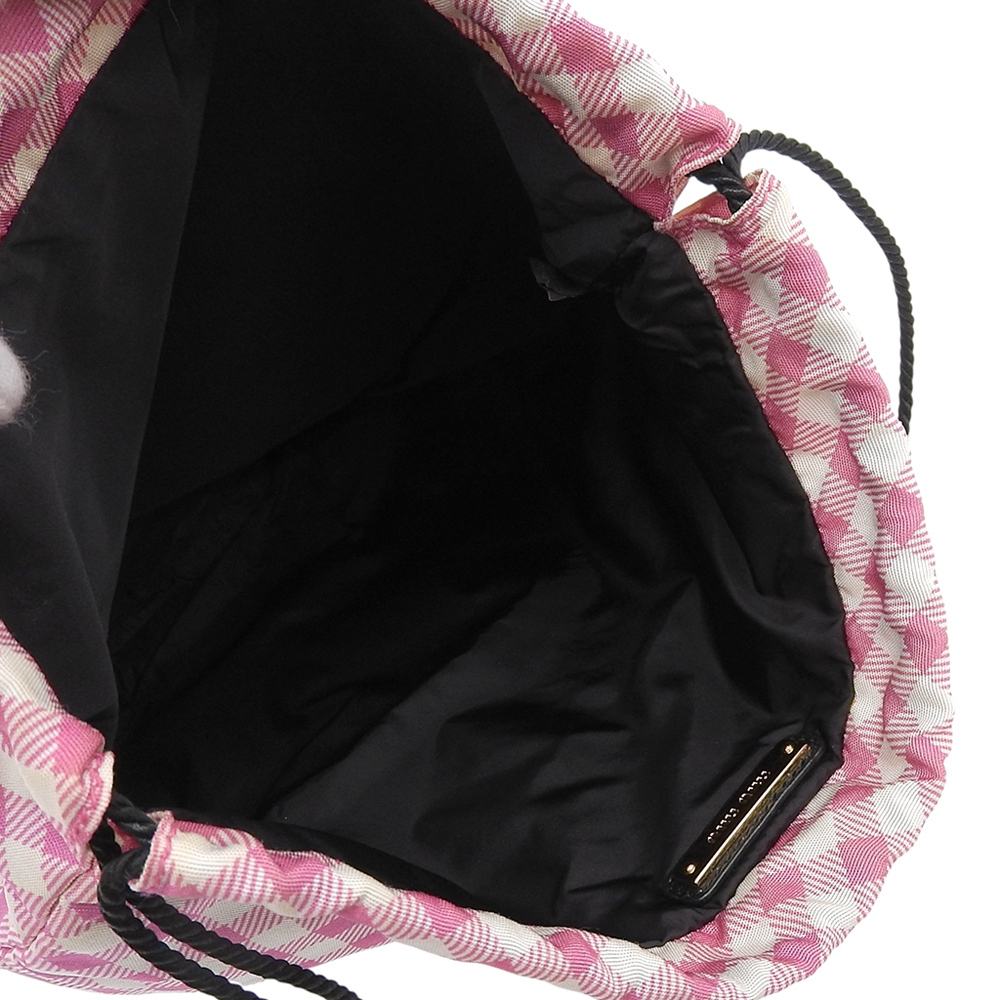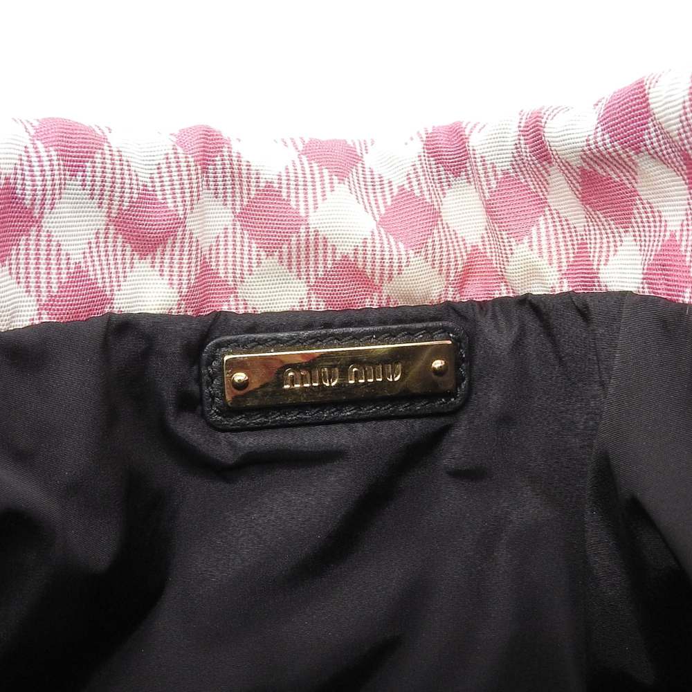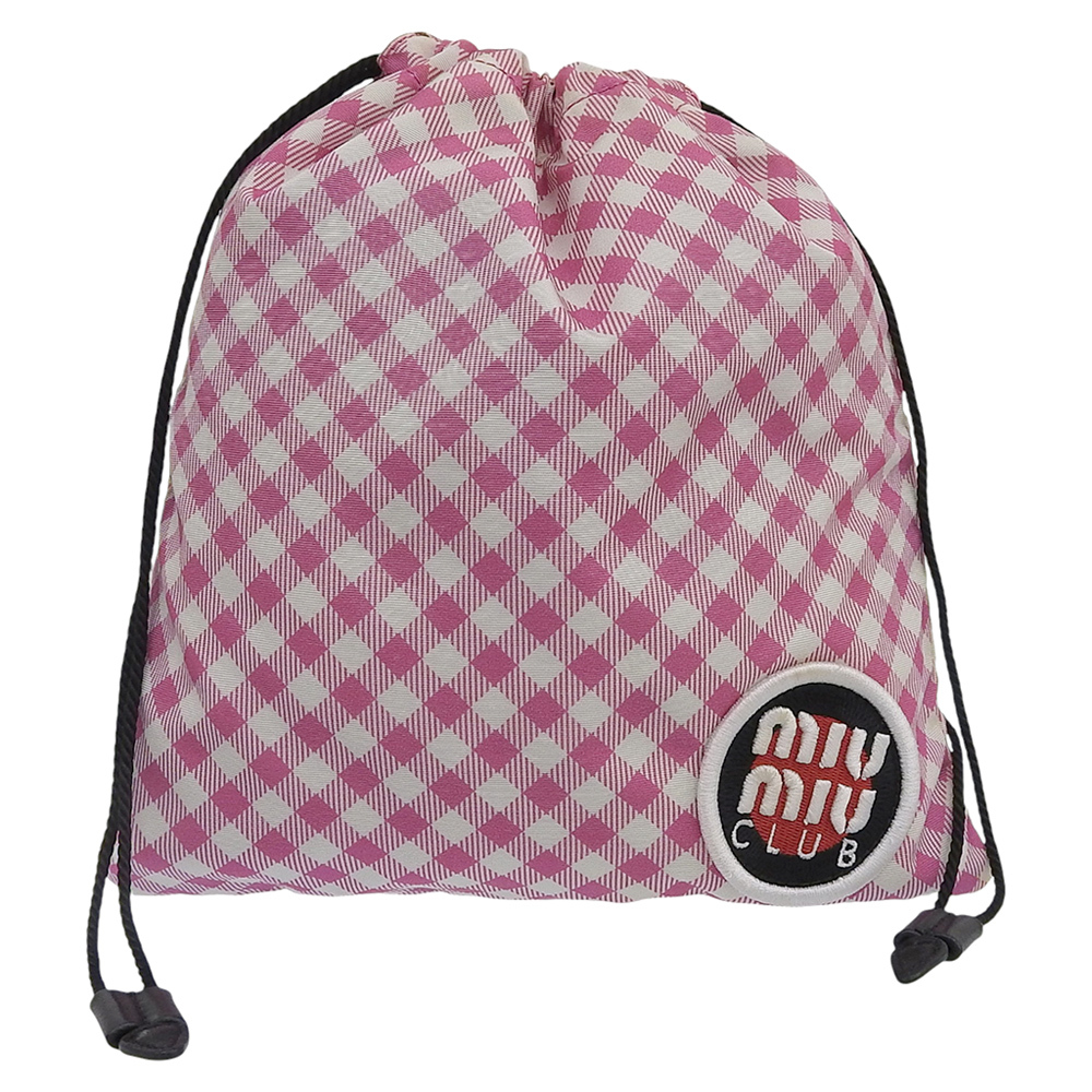 | 美品 ミュウミュウ 2018年商品 5NG005 CLUBワッペン ギンガムチェック レザー ドローストリング ハンドバッグ ポーチ 巾着 ピンク レディ |