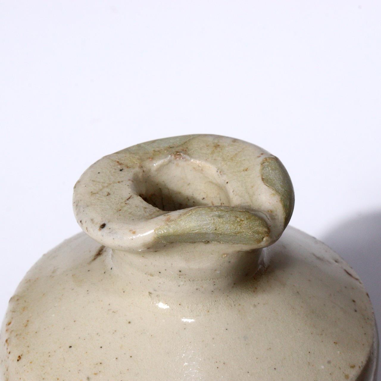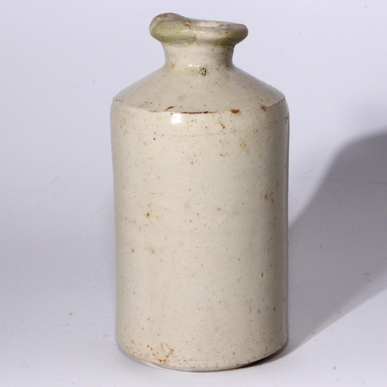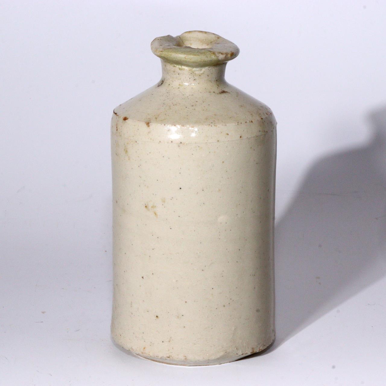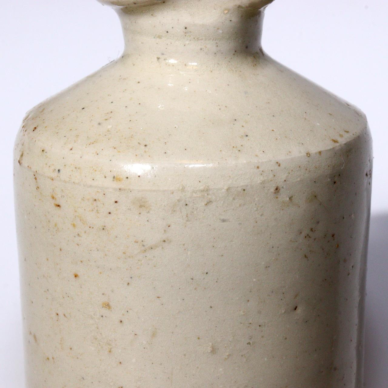 本品は英国製と思われるアンティーク陶器ボトルです。 フランスなどでも同様の薬瓶が存在し、当時は薬用や保存容器として使われていた可能性があります。 素朴な質感と落ち着いた釉調は、日本の白丹波徳利に通じる民藝的な美しさを感じさせます。 口縁部には修理痕があり、かえって実用美の魅力を引き立てています。 「用の美」を体現する工芸品として、コレクションやインテリアに最適です。 ■高さ 12cm ■直径 6.5cm ■口径 3.5cm ■重量 315g 状態:アンティーク品につき、口縁部に修理跡があります。全体的に経年による使用感がありますが、風合いを楽しめる状態です。 当方は骨董品を中心に取り扱っており、安心してお取引いただけるよう丁寧な対応・梱包を心がけております。 ◆ 商品について