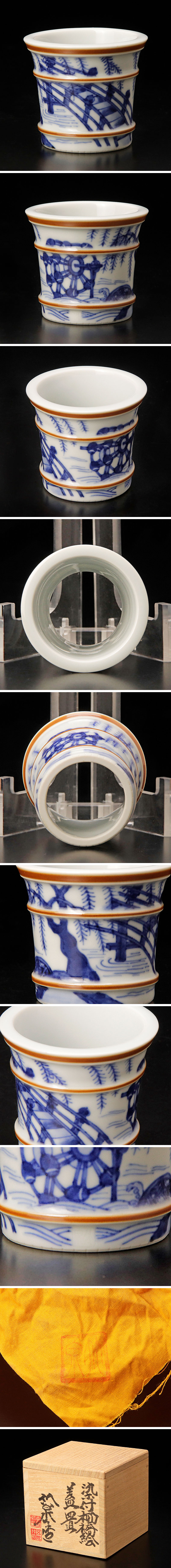 青の濃淡のみで施された繊細な絵付けが、とても目を惹く作品です。 ★商品は五代三浦竹泉の作品である事を保証致します。 |