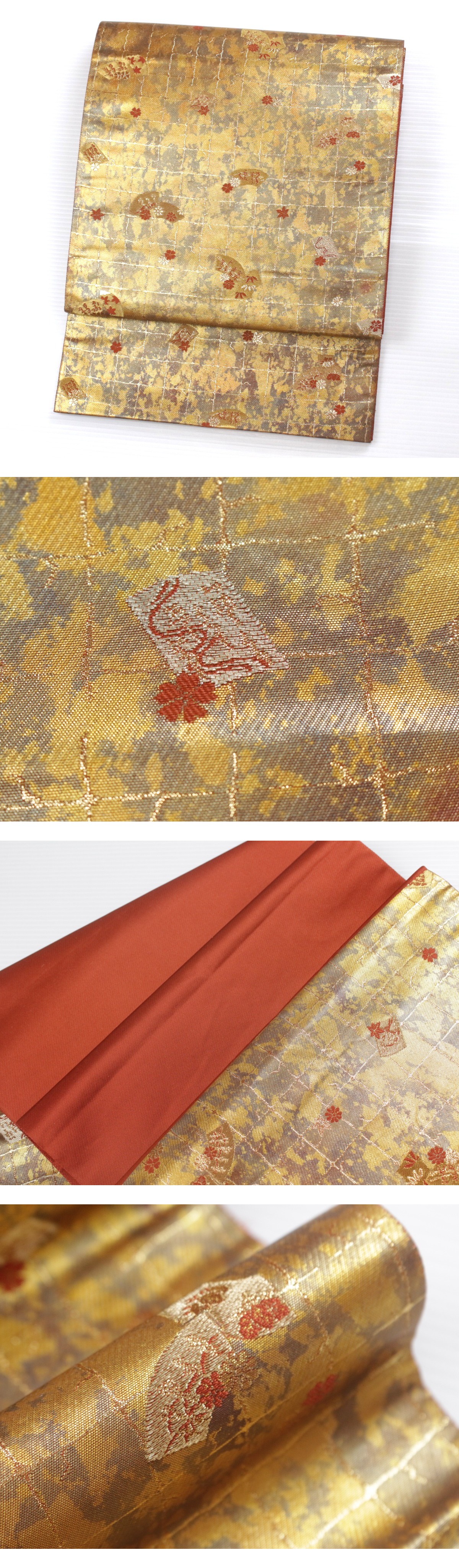 お着物好きからも絶大な人気を誇ります 老舗『服部織物』謹製、引き箔の技法を用いた正絹袋帯のご紹介です。 豪華な金箔を背景に、華麗な意匠が表されました。 引き箔とは、薄く漉いた和紙に金銀箔を貼り、それを細かく裁断して織り込む伝統技法。帯地に豊かな光沢と重厚感を与えるとともに、角度によって異なる煌めきを見せるのが特徴です。 服部織物ならではの確かな技と気品ある意匠が融合し、格式を一層際立たせています。 世代を超えて受け継ぎたくなる、西陣の伝統美をぜひお手元に。 お目に留まりましたら是非ご検討くださいませ。 【服部織物】 創業1788年(天平8年)。 京都西陣において匠の心と技を受け継ぎ、 一糸一糸丹念に、真のフォーマルにこだわり続けてきた機屋。 ※撮影時の部屋の照明によって画像の色に若干の差がございます。色味に差がございますことをご了承のうえご検討下さいませ。 …状態… 締め跡あり。 ※全くの新品ではございませんので、記載のない変色やスレ、ヤケ、その他僅かな難がある場合がございます。そのような理由でのキャンセルはお受けできませんので、ご了承の上ご検討お願いいたします。 |