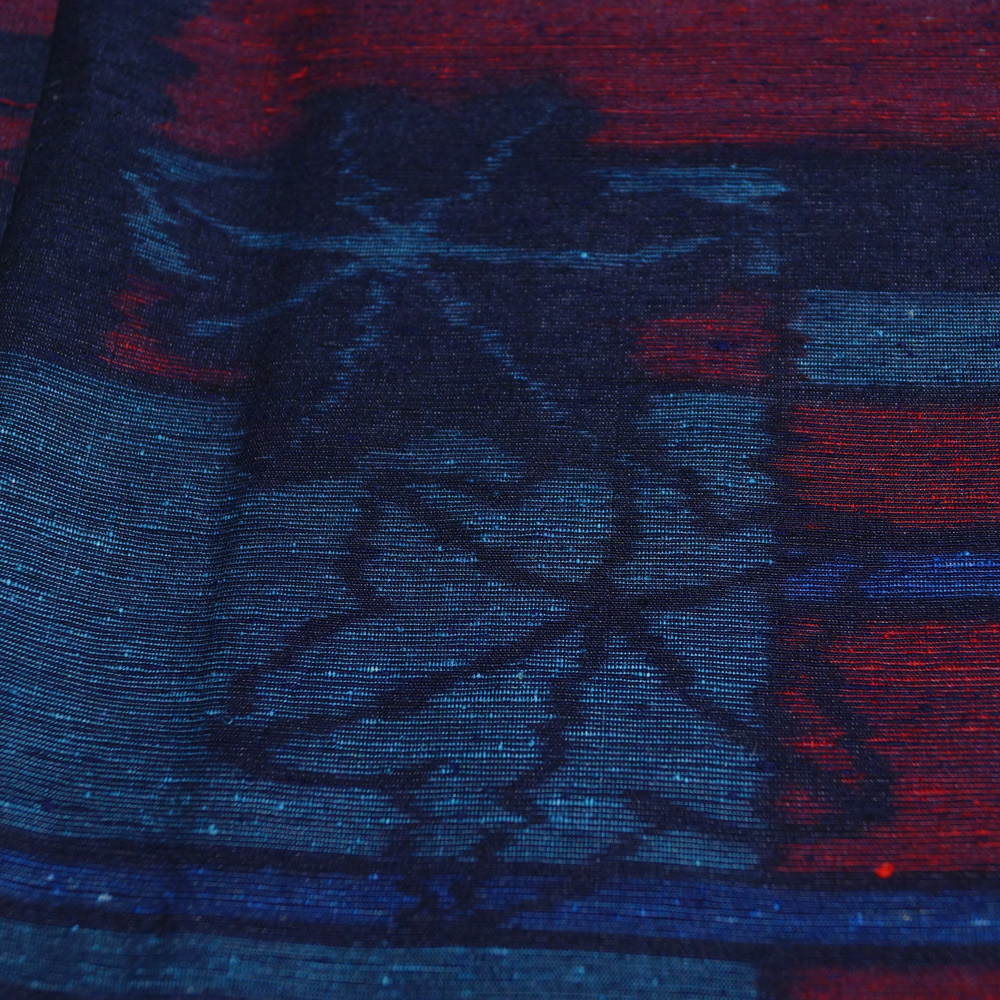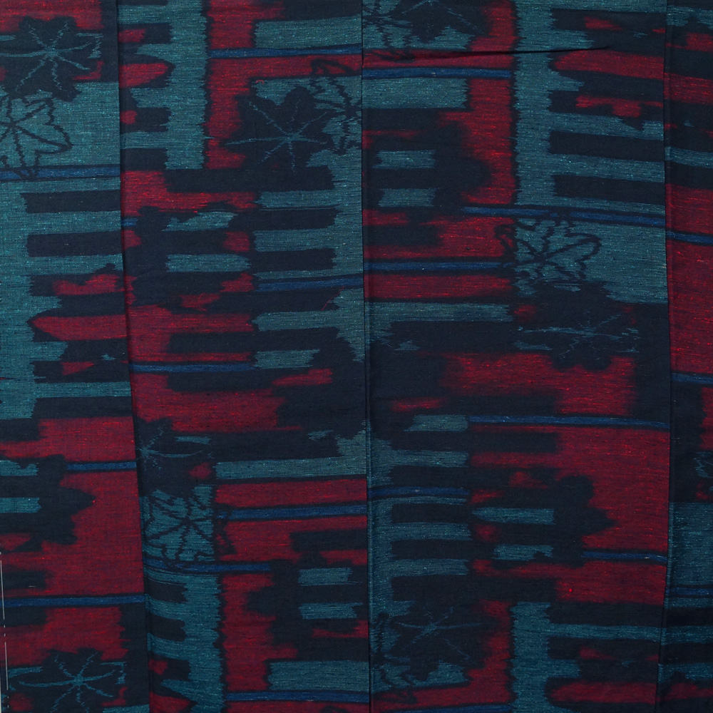 | 商品説明 | 濃紺色系の地に楓に幾何学的な模様が織られた紬です。 | ||