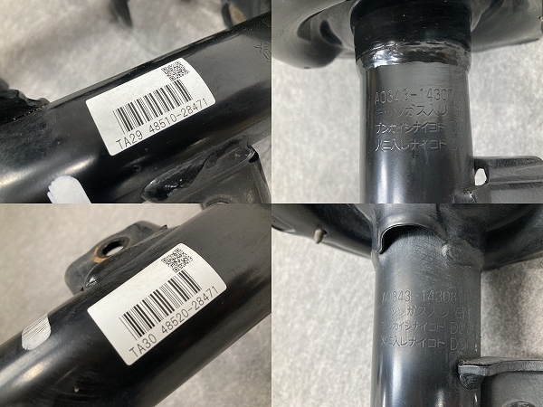 新車外しですが、取外し時、保管時の汚れ、擦り傷、小サビあります。 箱に入れて倉庫保管されてましたので状態は良く、ゴムの劣化も少ないです。 品番 48510-28471 48520-28471 48531-28780 ×2本 | ||||