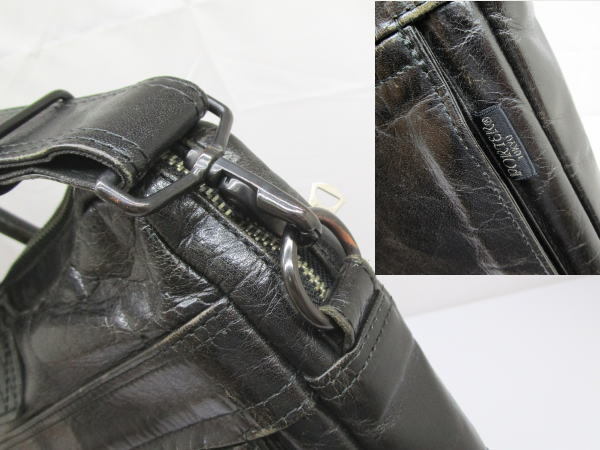 コメント | クラシックな風合いのレザーを使用したシックなデザインのビジネスバッグです。前後にポケット1ずつ、内側にペンケース、ポケット4と収納に便利です。 使用に伴う傷、汚れがございます。角、端に傷、色落ちがございます。 金具にメッキ落ちがございます。内側の色あせがございます。 |
