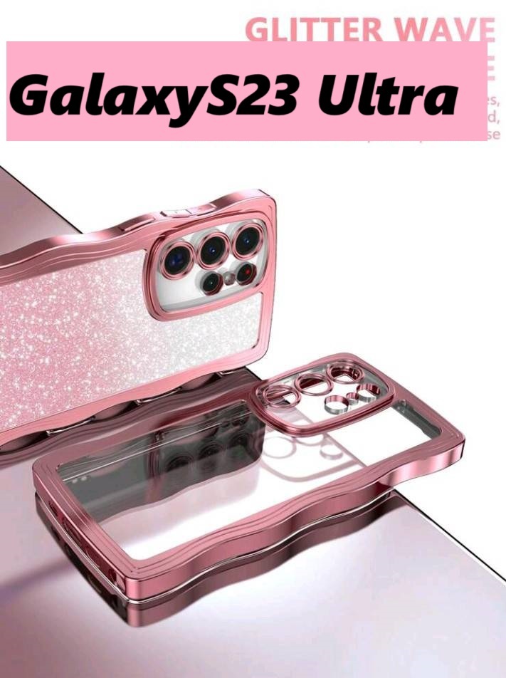 GalaxyS23 Ultra ピンクメッキ風 なみなみ グリッターシート付