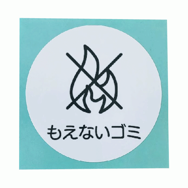 もえるごみ・もえないゴミ・ペットボトル・鉄くず・プラスチック・一般ごみ・あきびん・あきかん・かんびんのバリエーションがあります。耐水・再剥離可能特殊合成ラベルシートです。耐水性:水を扱うゴミ等にも使用できます。再剥離:再度剥がすときにノリが残りにくい仕様です。防汚性:表面がなめらかで汚れがつきにくい仕様です。強度:引き裂き強度が強く、破れにくい仕様です。