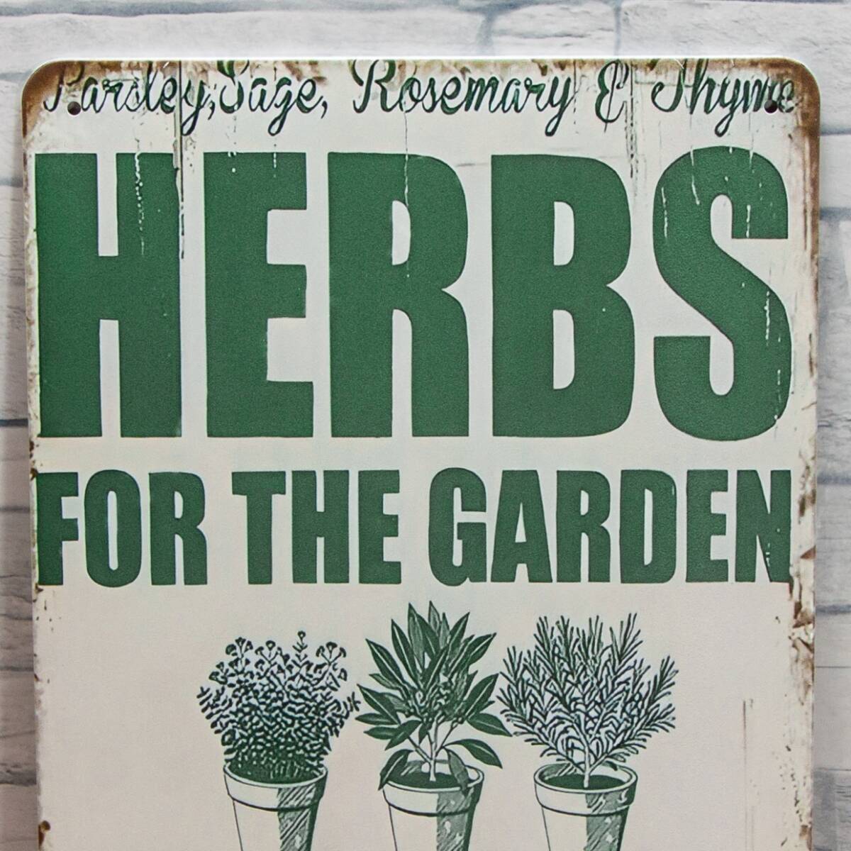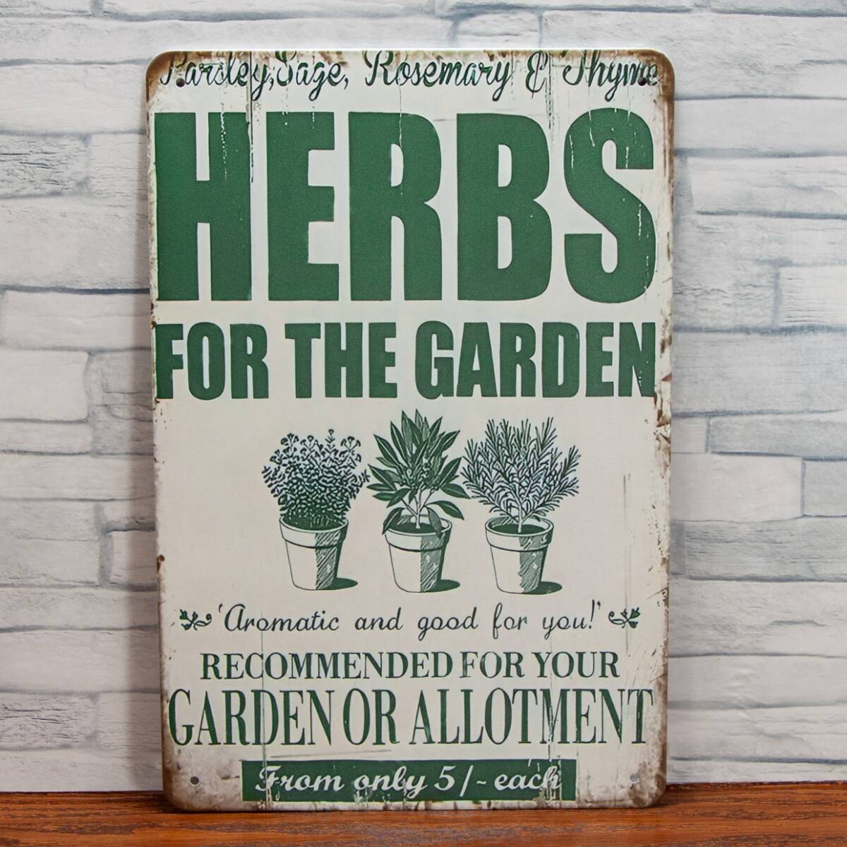 レトロ調ブリキ看板ハーブ柄 20㎝×30㎝