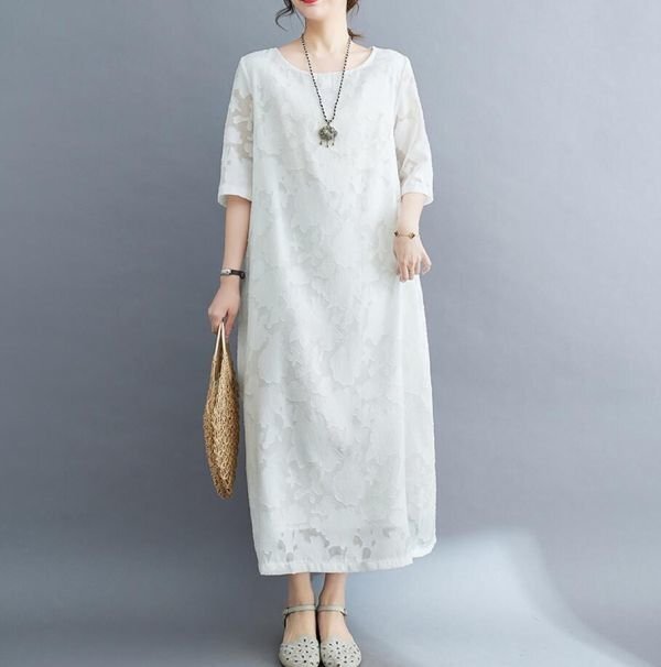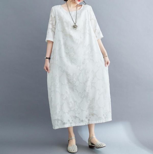夏新品 花柄 ワンピース レディース マキシ丈 体型カバー 可愛い 大人 五分袖 ロングワンピース★黒/2XLサイズ [浏览原始页面]