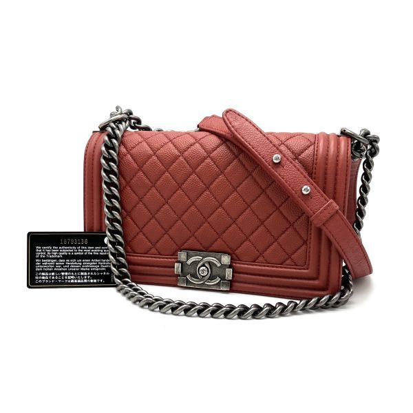 1円 良品 CHANEL ボーイシャネル 25 マトラッセ ココマーク キャビアスキン チェーン ハンド ショルダー バッグ eH1047A