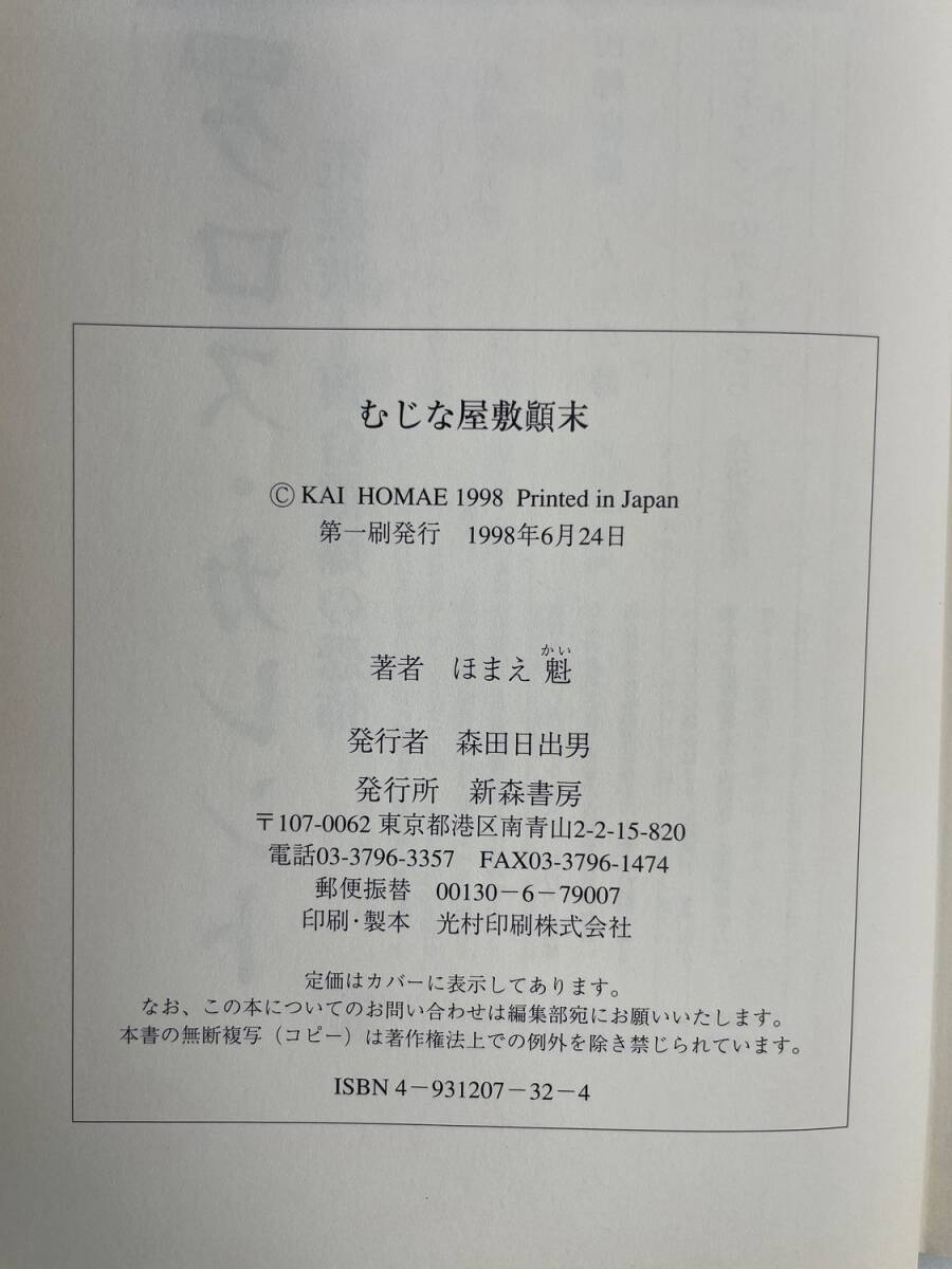 むじな屋敷顛末 ほまえ魁著者 1998年 平成10年初版【K185536】251022 [浏览原始页面]