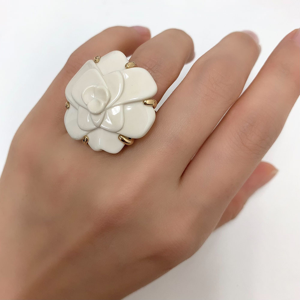 | 大きなフラワーモチーフが印象的な、カメリアコレクションのシャネルのリングです。新品仕上げ済みです。 |