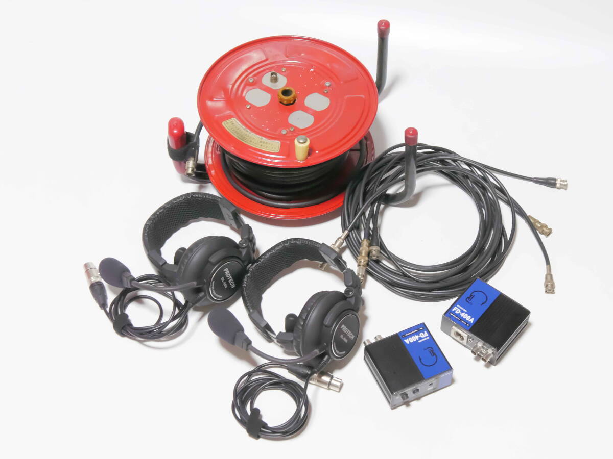 FD-400本体:2台 DL-500 ヘッドセット:2台 BNCケーブルドラム(キズ・汚れ多数):約17m BNCケーブル(汚れあり):約2.5m/3本 BNC中継コネクタ:2個 https://protechweb.jp/products/system/intercom/fd400a/