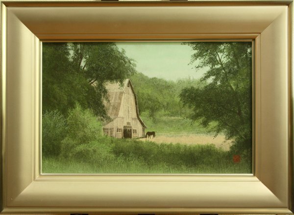 | ★商品説明★ | 北野 治男(きたのはるお) 1946-2018 大阪生まれ、京都教育大学特修美術科卒、師・西山英雄 日展特選連続受賞・内閣総理大臣賞・会員賞 日展理事、京都府文化賞功労賞、京都市文化功労者 京都の若手日本画家によるグループである真魚(MAO)を結成、同会の中心的存在として活躍 <作家> 北野治男 <タイトル> 「夏めく」 <技法> 紙本・日本画 <サイン> 画面下部に印 共シールあり <サイズ> 画 33×53cm M10号 額 52×72cm アクリル付き <コンディション> 額 上と左下に強いキズ、アクリルに多少のキズ、額裏の一部にややヤケ・褪せ 画面は良好です <付属> 黄袋(1カ所破れあり) 紙製差し箱 <その他> 真作を保証致します この他にもいろいろと出品しています。よろしければ、「出品中のオークション」よりご覧下さいませ。 <臨時休業等のお知らせ>はこちらからご確認下さい。 |