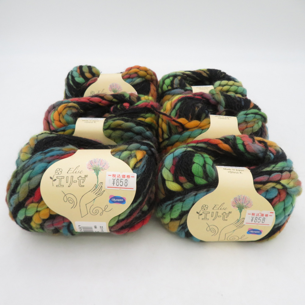 | オリムパス製絲 毛糸 Elise エリーゼ 6玉セット 3番色 緑系 35g玉巻 約94m Olympus ファンシーヤーン 日本製 秋冬毛糸 未使用品 |
