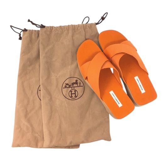 | エルメスのサンダル「フールトゥ ウッドサンダル」です。シンプルなデザインながら鮮やかなエルメスオレンジとウッドソールがお洒落で高級感のあるサンダルです。 | ||