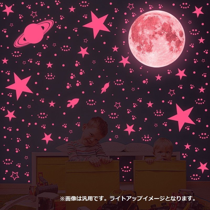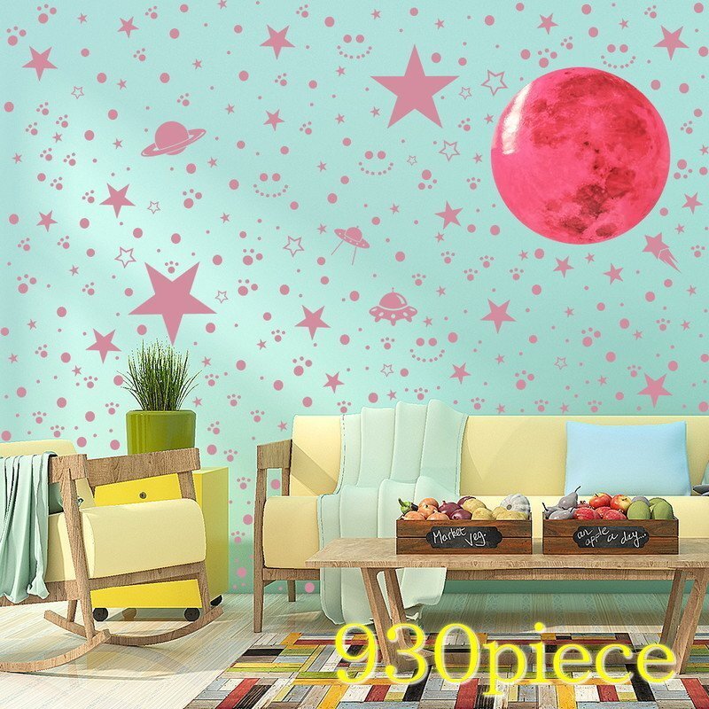 暗闇で光る☆蓄光 930ピース 星 set ピンク 月 宇宙 惑星 ウォールステッカー 壁 天井 シール リメイク DIY