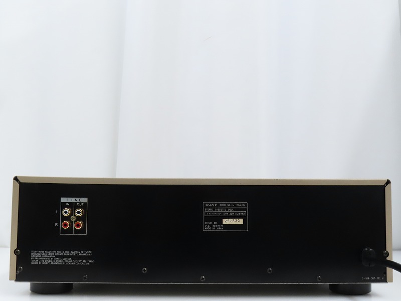 ■メーカー : SONY ■型番 : TC-KA3ES ■外径寸法 : W430×H135×D360mm ■重量 : 7.6kg 【商品の状態 当店での確認内容】 電源は入りますが、ホルダー開閉ができず読み込み動作未確認となります。 リモコンは付属しておりません。 ※上記により【現状商品】としての出品となります。 「商品の状態」に関しましては当方主観の目安となります。外観などは中古品で個人差もありますので詳細は画像にてご判断ください。 画像にて不明な点はご質問下さい。 出品商品は画像のものですべてになります。画像に写っているもの以外は付属いたしません。 ※注意※ のシステム上、送料表記が送料未定となっておりますが、送料に関しては全て有償となりますので下記を参照下さい。 【送料 全国一律 2,080 円 沖縄、離島は別途お見積り】 ※送料がお得になるサービスです(下取りシステムのご案内です) ストア決済利用時にクレジットカードやPayPay残高/PayPayクレジットを利用の方は留意点がございますのでこちらを参照上ご利用ください。 当ストアでは商品を安全にお届け出来るよう提携運送会社と協議の上、発泡緩衝材や強度段ボールの使用等 運送会社が指定する梱包方法や資材を採用しております。 より安全にお届け出来るよう商品仕様により梱包サイズが大きくなる場合や個口数が増える事がございます。 【当ストアオークションルールを入札前に必ずご確認ください。】 【落札後の取引手順】 ・落札後は取引ナビにて、必要事項をご入力後、送信ください。 取引終了後48時間(土、日は除く)以内に入力をお願い致します。 ※ご連絡が頂けない場合は落札者様都合でのキャンセルとさせていただきます。 ・落札代金(商品代金+消費税+送料)の入金をお願い致します。 ※大型商品の場合は送料確定後の決済となる為取引ナビを入力頂き、当ストアより送料のご案内が来るまでお待ちください。(土曜、日曜、祝日の場合は翌営業日より順次ご案内いたします) ・お支払い方法はクレジットカード/PayPay残高/PayPayクレジット/PayPay銀行/ゆうちょ銀行のみです。 ※商品代金引換(代引き)のお取り扱いはしておりません。 ※領収証の発行が必要な方はご連絡ください。 ※銀行振込の際の振込手数料はご負担願います。 ・入金確認後に出荷手配を致します。 (原則入金確認後3営業日以内に発送いたしますが、大型や重量のある製品はお時間をいただく場合もございます。) ・発送は当店指定の運送会社の元払いのみでの発送となります。 ※他の運送会社、送料代引き等は致しかねます。 ※落札者様ご自身での運送会社の手配いただく事も可能ですが荷物事故の責任の所在の問題上、梱包は致しかねます。 ※店頭にお越し頂き手渡しも可能(福岡市早良区)です。ご希望の方はご落札後にご連絡下さい。 ・大型/重量物商品の送料につきましては商品の特性上、荷降ろし状況等により送料が大きく前後し運送業者に別途見積りが必要な為、早めのお問い合わせにてお見積り上、入札をお願い致します。 【初期不良の保証について】 ・商品到着後の初期動作不良、また配送中の事故による破損、不具合が有る場合は、商品発送後10日以内に当ストアまでご連絡ください。当ストアでは修理での対応を優先させて頂きますが、修理不可の場合は全額返金させて頂きます。 (商品代金+消費税+送料のお支払い頂いた金額となります) 【初期不良の保証の対象外について】 次の場合は保証の対象外となりますのご留意ください ・ジャンク商品、現状商品、難あり商品での出品商品。 ※難あり商品に関しましては動作確認時に一部動作不良が確認された商品になり、記載している動作確認以外にも、動作不良がある可能性もございます。こちらに関しましても保証対象外となりますことをご理解ください。 ・年代物のオーディオなどで、当店にてわからない範囲で部品が交換されている場合 ・楽器類の特殊機材(マイクロスコープ等)での確認までは行っておりません。気になる方は事前にご質問いただくか、入札をお控えください。 ※初期不良に関しましては【商品の状態】に記載のもの、またそれによって起因する動作不良は対象外です。 ※商品発送後10日を過ぎてのご連絡は対応が出来ませんので、商品が到着しましたらお早めに確認をお願い致します。 【メーカー保証の加入・継承】 ・未使用品、展示品やメーカー保証期間が残っている商品に関しまして、メーカー保証の加入、継承が必要な方は、落札後取引ナビ内にて当ストアにお知らせください。商品発送までにご連絡いただけない場合、メーカー保証の手続きを承れない場合があります。 【評価について】 ・評価不要の場合、必ず取引ナビの「要望欄」にてお知らせください。それ以外でご連絡をいただいた場合、対応できない可能性がございます。一度行った評価はシステム上取り消しが行えませんのでご了承ください。 【入札削除・キャンセルについて】 ・入札後はトラブル防止の為いかなる事情がお