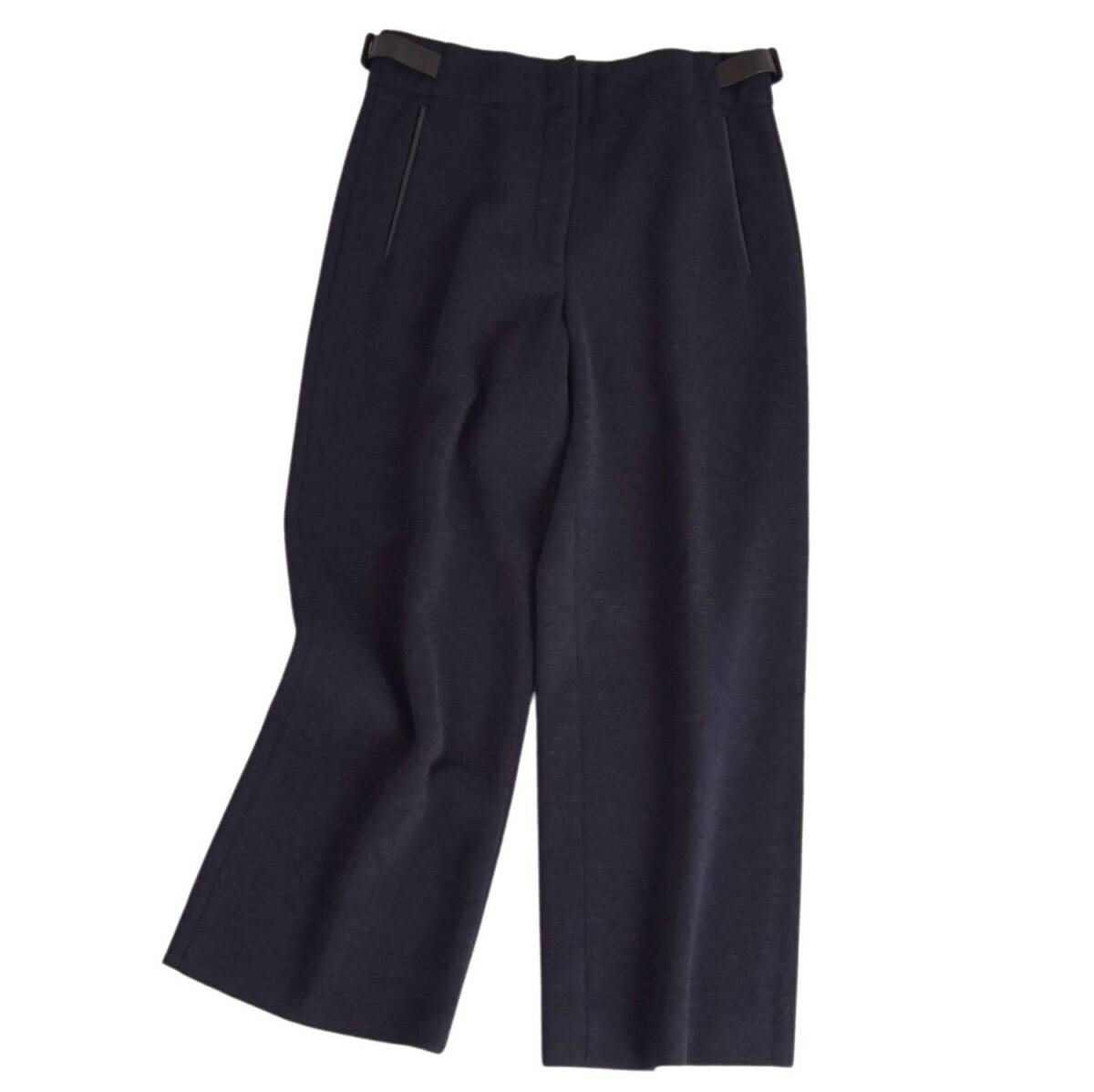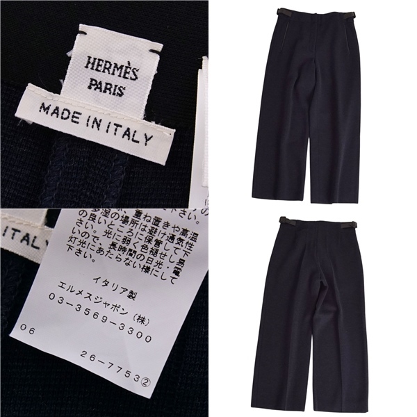 | 美品 エルメス HERMES パンツ ワイドパンツ ニット ウール コットン ラムレザー ボトムス レディース 36(S相当)ネイビー |