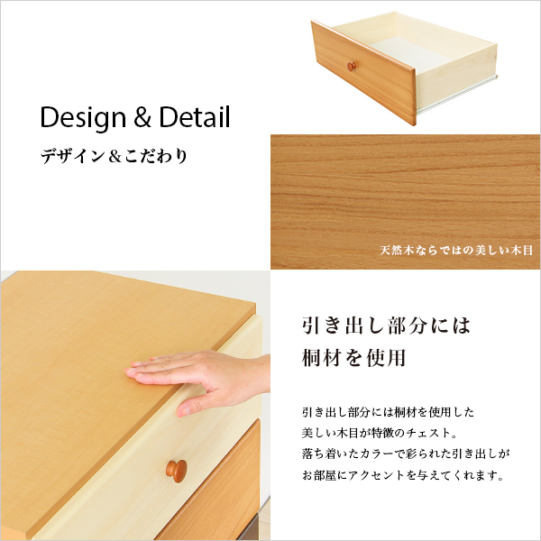 | 【ポイント】 ①美しい天然木を使用したチェストです。 ②スライドレールで楽々取り出し♪ ③届いてすぐ使える完成品です。 ④生産国は安心の日本製です。 ⑤シリーズで揃えればお部屋を明るくしてくれます。 |