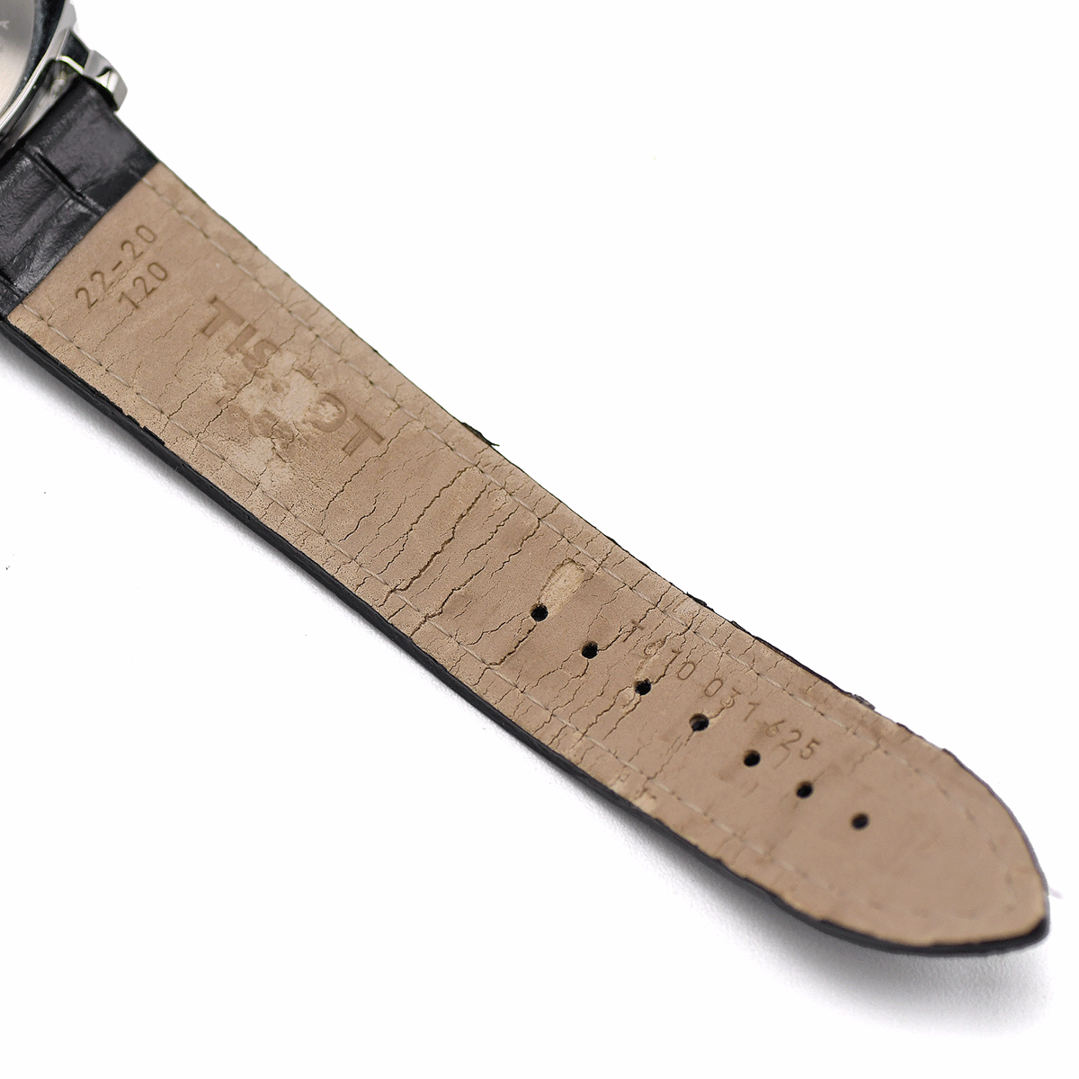 裏蓋やバックルには保護フィルムが貼られたままの未使用品となります。ただ、ベルト内側に経年劣化による細かな亀裂がございます。使用上の問題はございませんが、画像のような状態の為、ベルトの状態ランクは中古とさせて頂きます。 ヴィンテージ感のあるデザインが特徴の『T-LORD』。クラシカルなクロノグラフデザインとモダンなデザイン性が絶妙に調和した腕時計です。 |