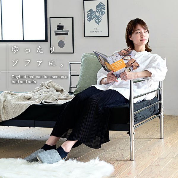 クールなデザインが印象的なセミシングルショートのデイベッド。 コンパクトで抜け感のあるデザインなのでワンルームなどに置いても圧迫感がありません。 ベッドとしてもソファとしてもお使いいただけます。 |