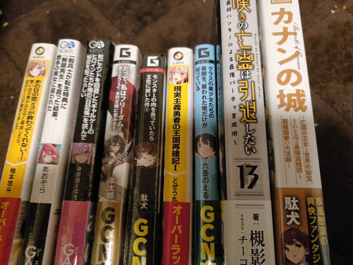 嘆きの亡霊は引退したい13と現実主義勇者の王国再建記1は既読です。それ以外はあちこちの本屋で買ってから暗所で保存です。本を買いすぎて場所がなくなってきたので断捨離します。