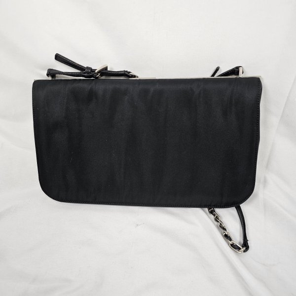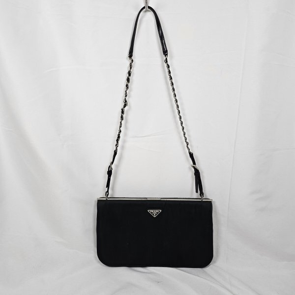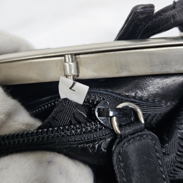 プラダのアイコン素材テスートナイロンと、レトロな**がま口(フレーム)**が特徴のヴィンテージショルダーバッグです。