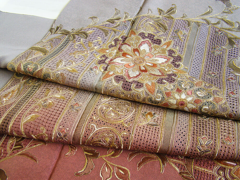 | 商品説明 | こちらのお品は「袷」でございますので、10月~5月にお召頂ければと思います。 大変にしなやかで滑らかな手触りの着心地良い重めの極上ちりめん地の生地、 落ち着きある渋い桔梗鼠色地に裾にかけて蘇芳香色、柳茶色ぼかし染に、 精緻な手技を駆使した汕頭刺繍入りに、極め細やかな花草や華文柄の総刺繍が丁寧に刺繍され、 重厚感のある匠の技の美しさをご堪能頂ける仕上がりとなっております。 お慶びのお席や今日を美しく愛でるかの様な装いを印象付ける 正統派のお着物として一枚は欲しい麗しいお着物です。 八掛は共色(正絹)、幅広い年代の方にお召頂けます。 |