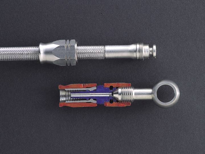 ●フルステンレス製(SURE-SYSTEM-LINE)フィッティングとホースの接合部はスエージング式カシメ型 ●フィッティング:Lタイプ ●ホース長:60cm ●バンジョー仕様:ステンレス製(クリア) ●ホース仕様:ステンレスメッシュ(クリア) |