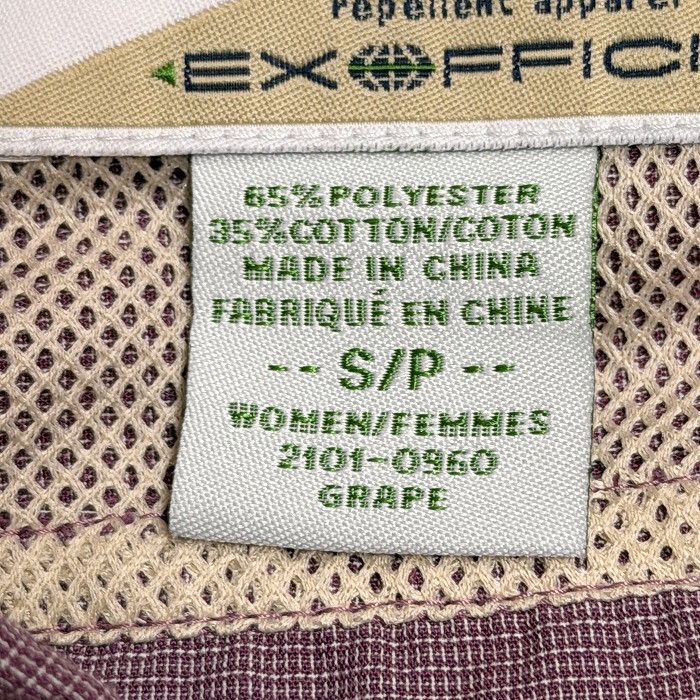 | 商品タイトル | Exofficio Insect Shield Fishing シャツ 袖ロールアップ ベルクロフラップジップポケット 長袖 アウトドア ポリ×綿 S 紫 レディース |