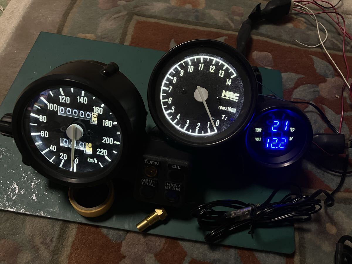 NSR250R(MC18)用スペシャルメーターポン付けスペシャルkit白LED照明デジタル水温/電圧計RS250風仕様1個限りです。