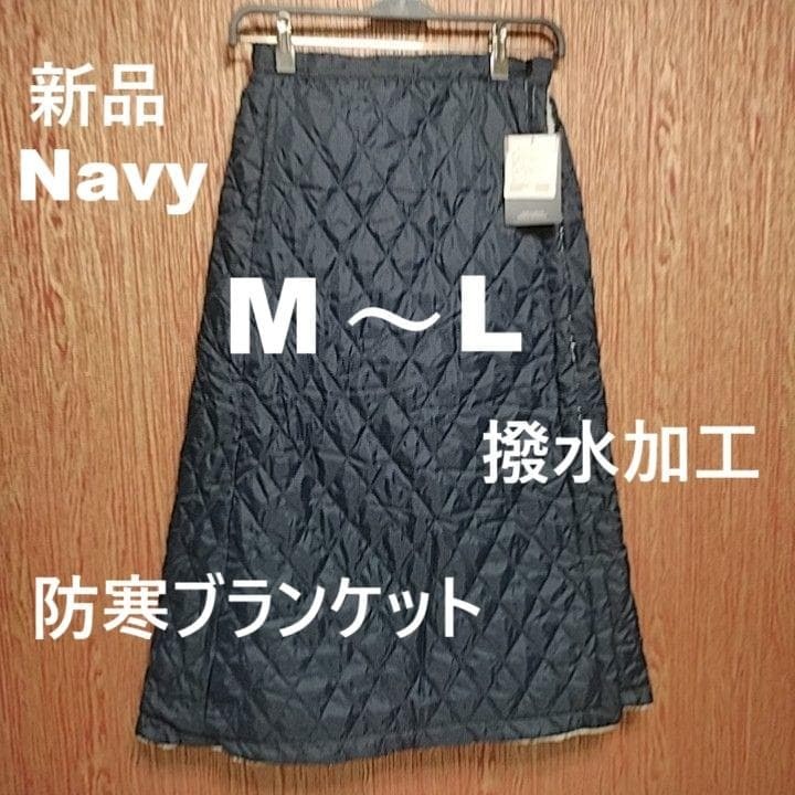 # # M~L 新品 黒 2WAY キルティング ラップスカート 防寒ブランケット 紺 ネイビー