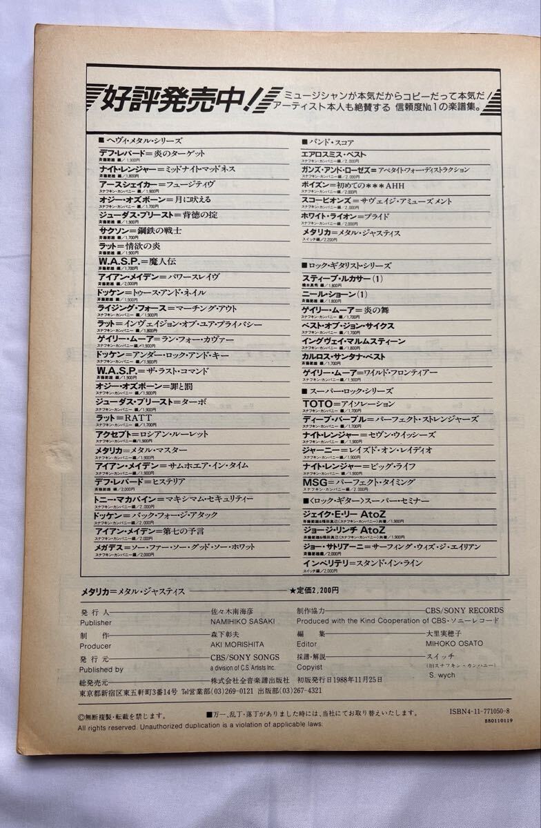 METALLICA(メタリカ)の4thアルバム『…AND JUSTICE FOR ALL』(1988年)の日本版バンドスコアです。| 出价者 | 信用 | 价格 | 时间 |